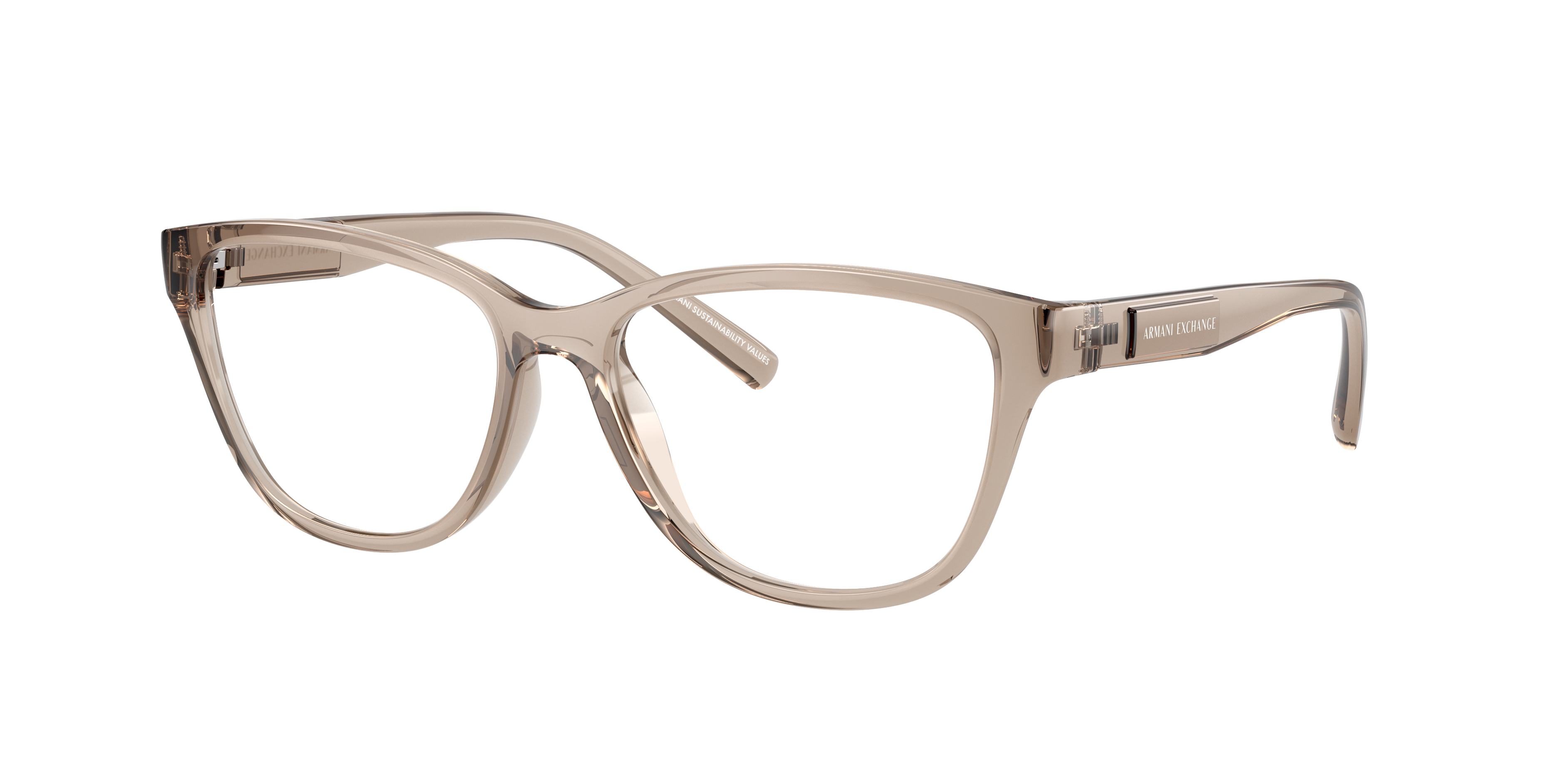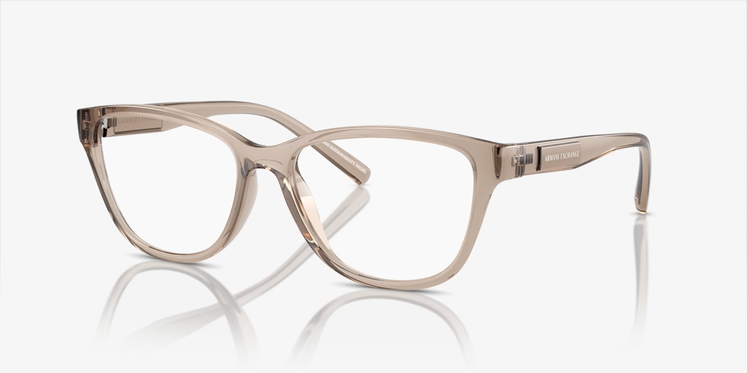 Elevate your fashion quotient with Armani Exchange AX3111U optical glasses. The cat eye shape and shiny transparent brown frame color give these frames a unique and stylish look. The frame is designed to fit comfortably, making it a versatile choice for everyday wear. These glasses are not just fashionable but also practical. Embrace your individuality and exude confidence with these stunning Armani Exchange AX3111U optical shades. Available with prescription lenses.