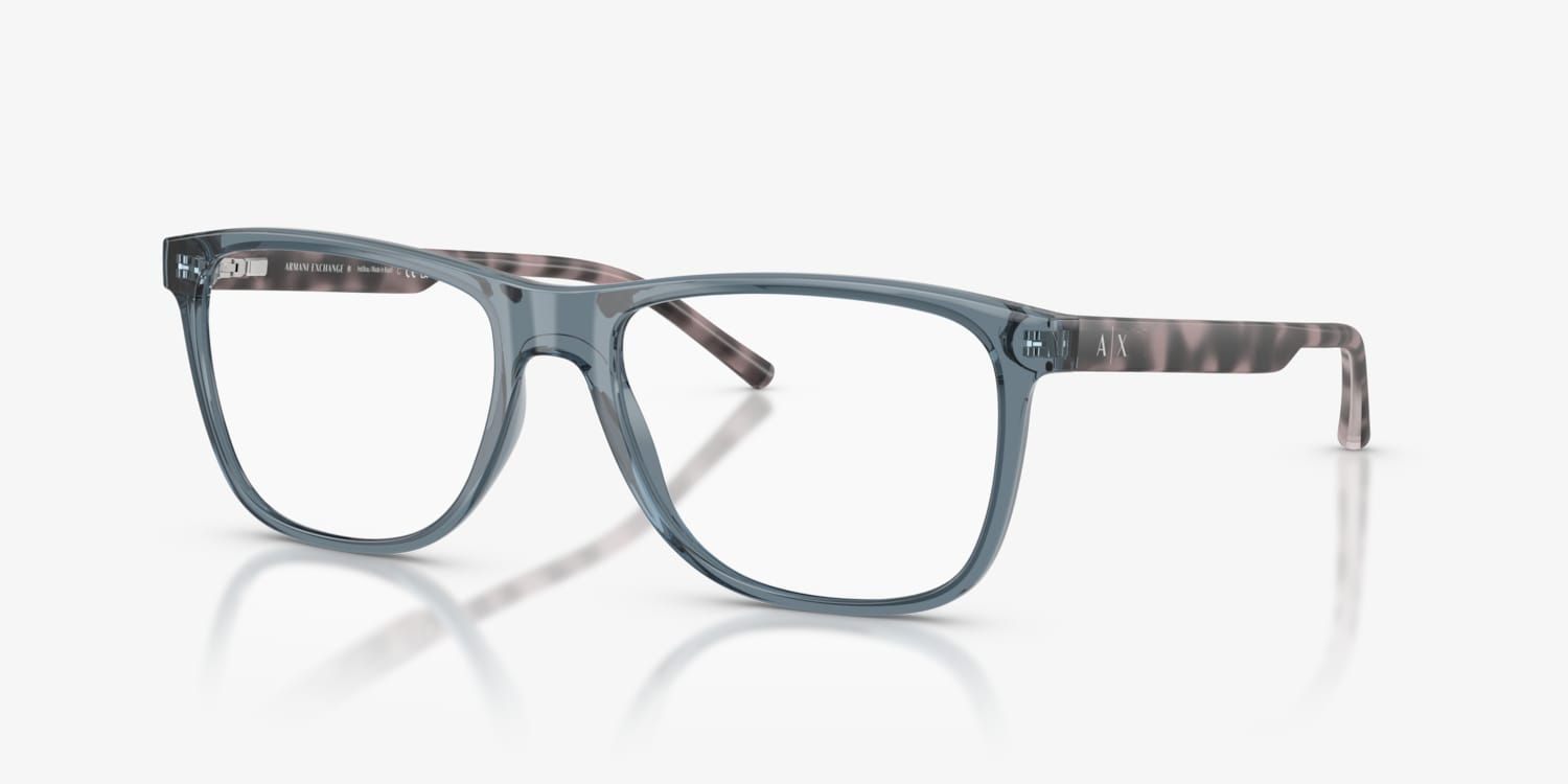 Elevate your fashion and optical standards with Armani Exchange AX3048 eyeglasses. The polished, shiny blue finish of the pillow-shaped frame adds a touch of sophistication to any look. These shades are designed to accommodate your individual style preferences while providing excellent vision. Embrace the power of impeccable design and superior optics with these stylish frames. Available with prescription lenses.