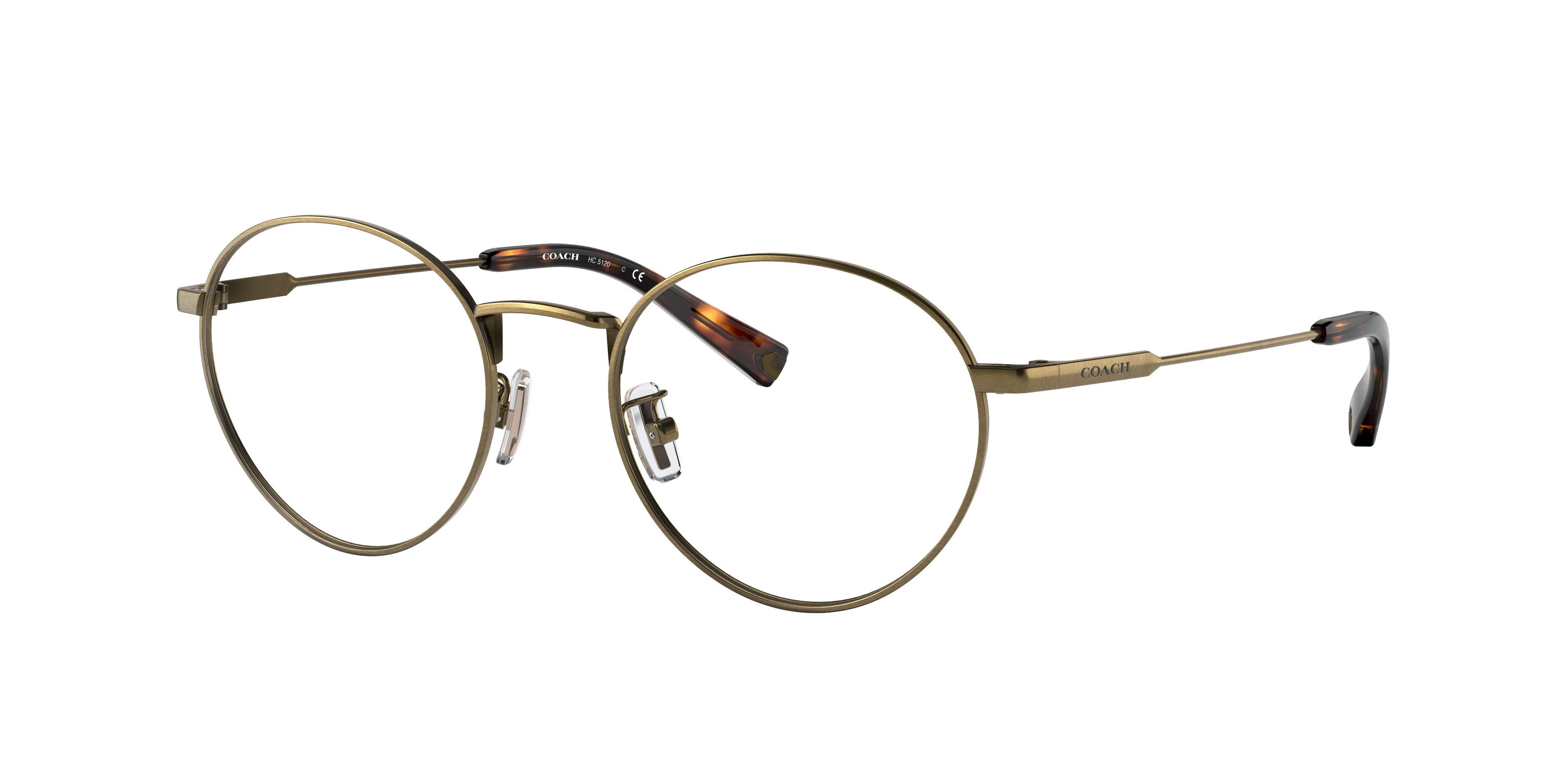 Step into the world of high fashion with Coach C2101 eyeglasses. The round shape and polished metal frame, in a striking antique gold color, exude a timeless appeal that never goes out of style. These glasses are not just stylish but also practical, making them an ideal choice for everyday wear. Available with prescription lenses.