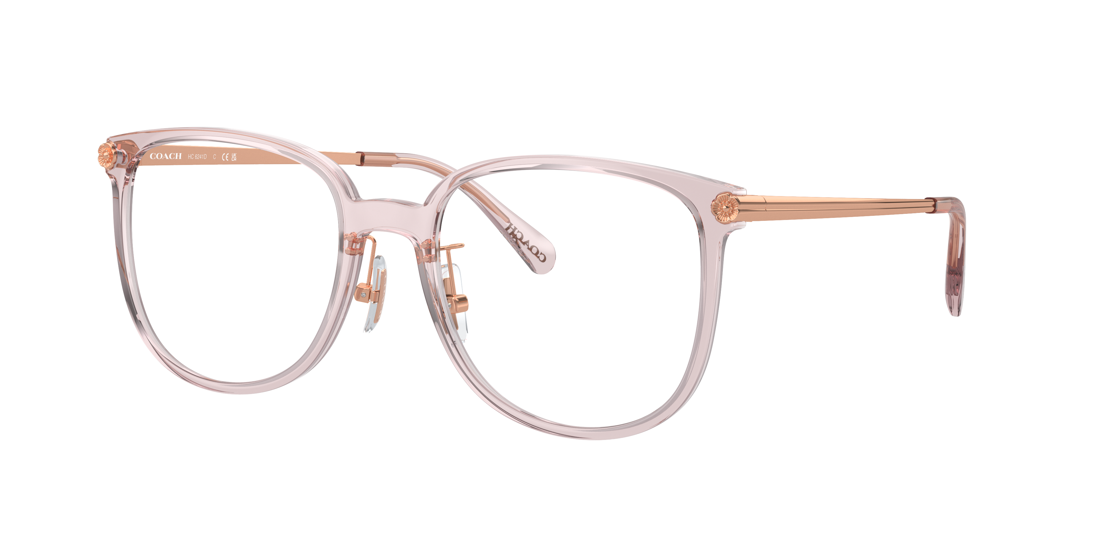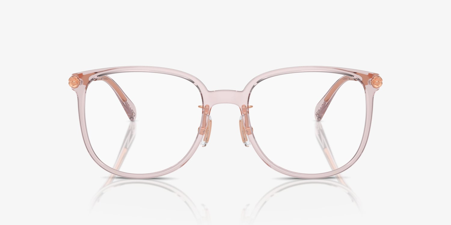 Embrace the unique blend of style and optical utility with Coach HC6241D glasses. The square shape, combined with a polished transparent dusty rose frame color, adds a touch of sophistication to any look. The saddle bridge ensures a comfortable fit, while the frame's overall design provides a modern twist on the timeless style. These shades are not only stylish but also practical. Available with prescription lenses.