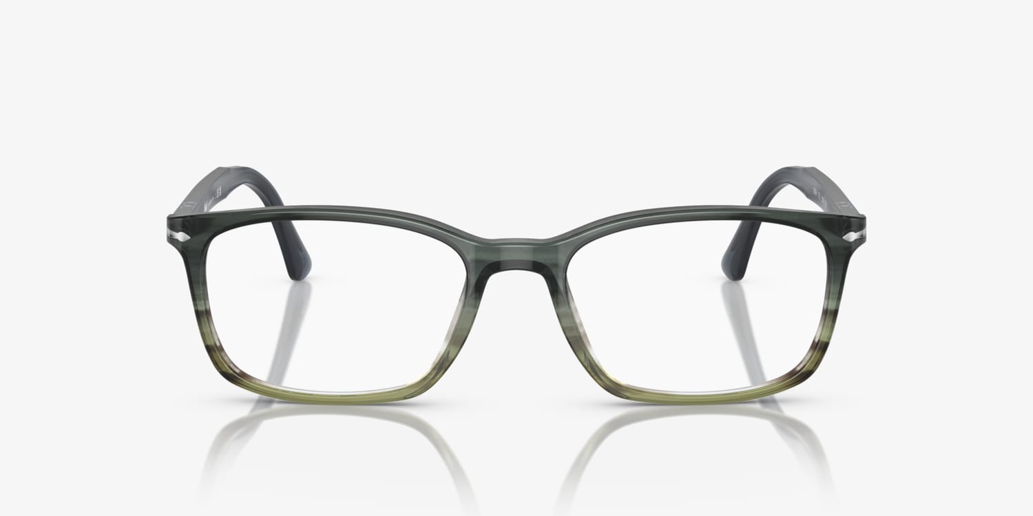 Elevate your fashion and optical standards with Persol PO3189V eyeglasses. The square shape, crafted from high-quality acetate, offers a timeless look that is versatile enough to suit any face shape. The polished grey striped green gradient frame color adds a touch of sophistication, while the saddle bridge ensures a comfortable fit. These glasses are as stylish as they are practical. Available with prescription lenses.
