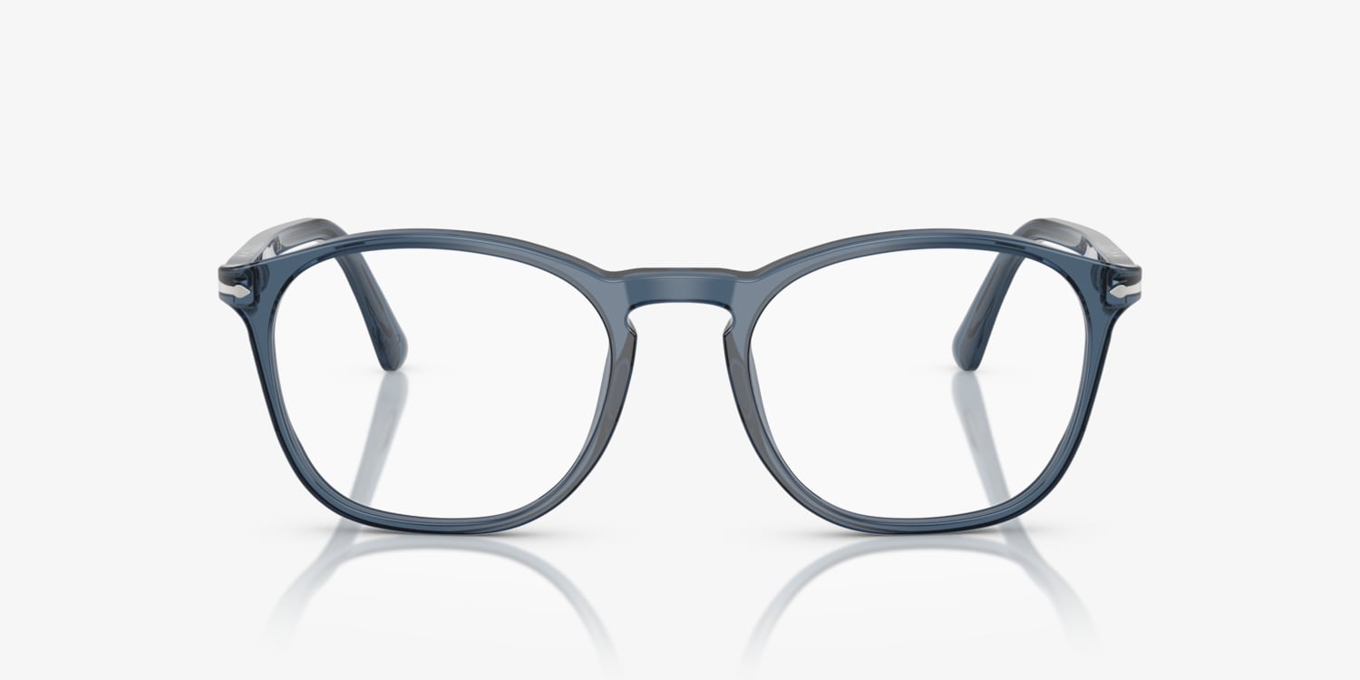 Elevate your style quotient with Persol PO3007VM eyeglasses. The square shape and keyhole bridge add a vintage touch to the modern design. Crafted from high-quality acetate, these frames are durable and lightweight. The polished finish and transparent denim blue color give them a unique look, making them a must-have accessory for any fashion-forward individual. Available with prescription lenses.