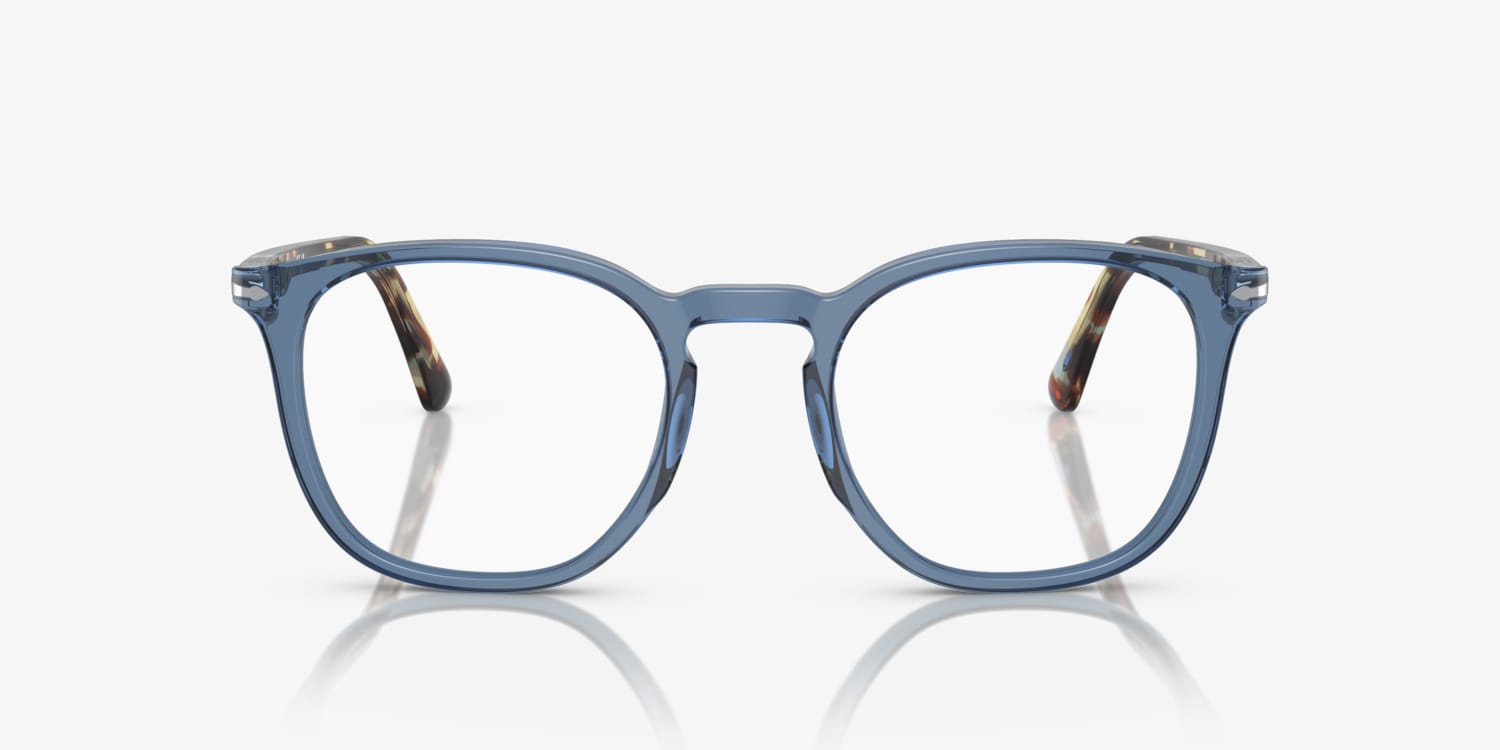 Elevate your style while maintaining a high level of performance with Persol PO3318V eyeglasses. The polished black frame, crafted from durable acetate and featuring the iconic phantos shape, features a unique keyhole bridge for added comfort. The transparent navy color adds a touch of sophistication to the overall design. These glasses are not only stylish but also versatile. Available with prescription lenses.