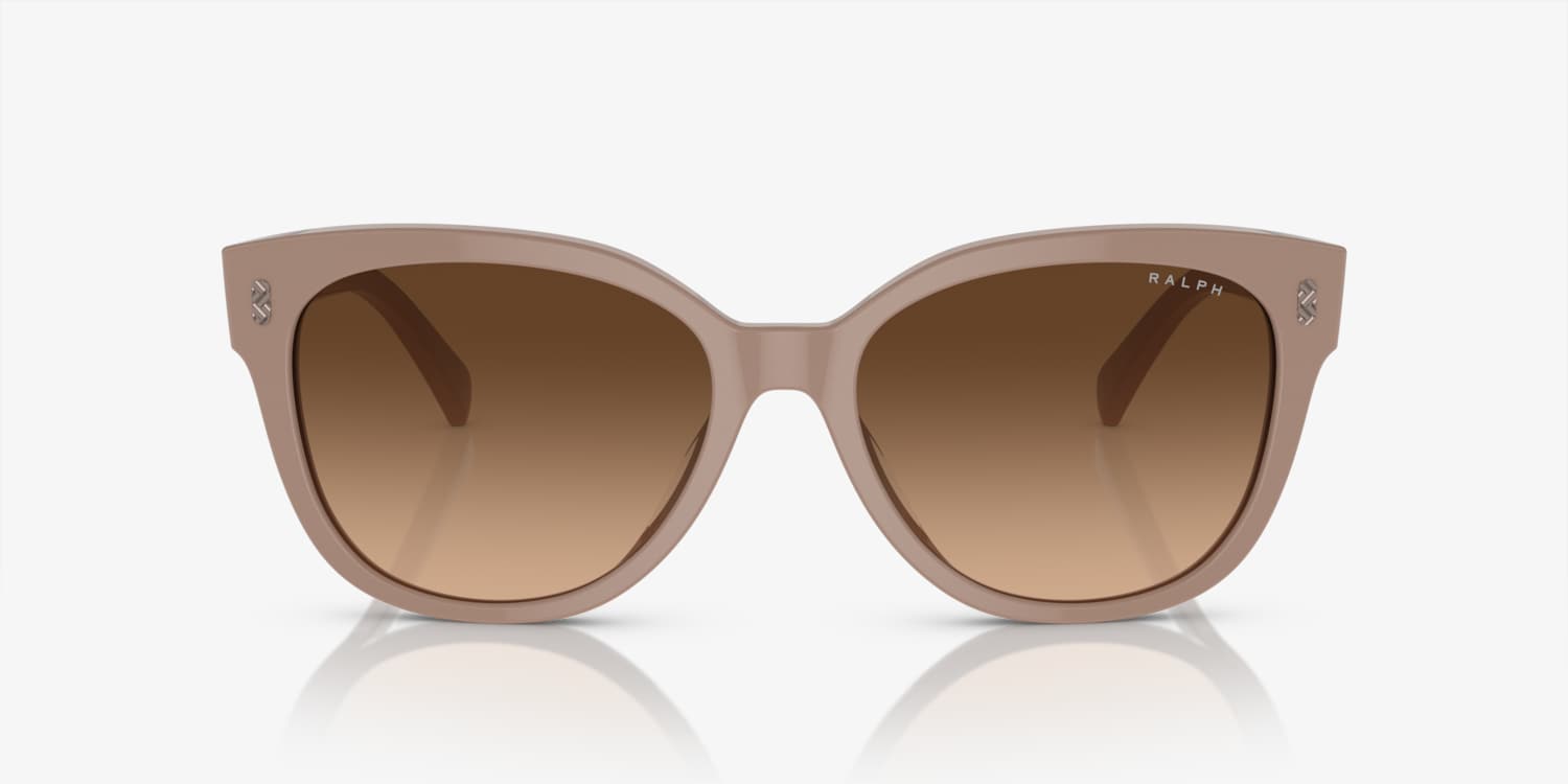 Elevate your style quotient with Ralph RA5305U sunglasses. These glasses feature a polished, shiny solid beige frame in a cat eye shape, crafted from durable acetate. The gradient brown lenses offer a stylish touch and provide optimal vision coverage while the shiny solid beige frame adds an extra layer of chicness. Explore the world through the lens of fashion with these stylish shades. Available with prescription lenses.