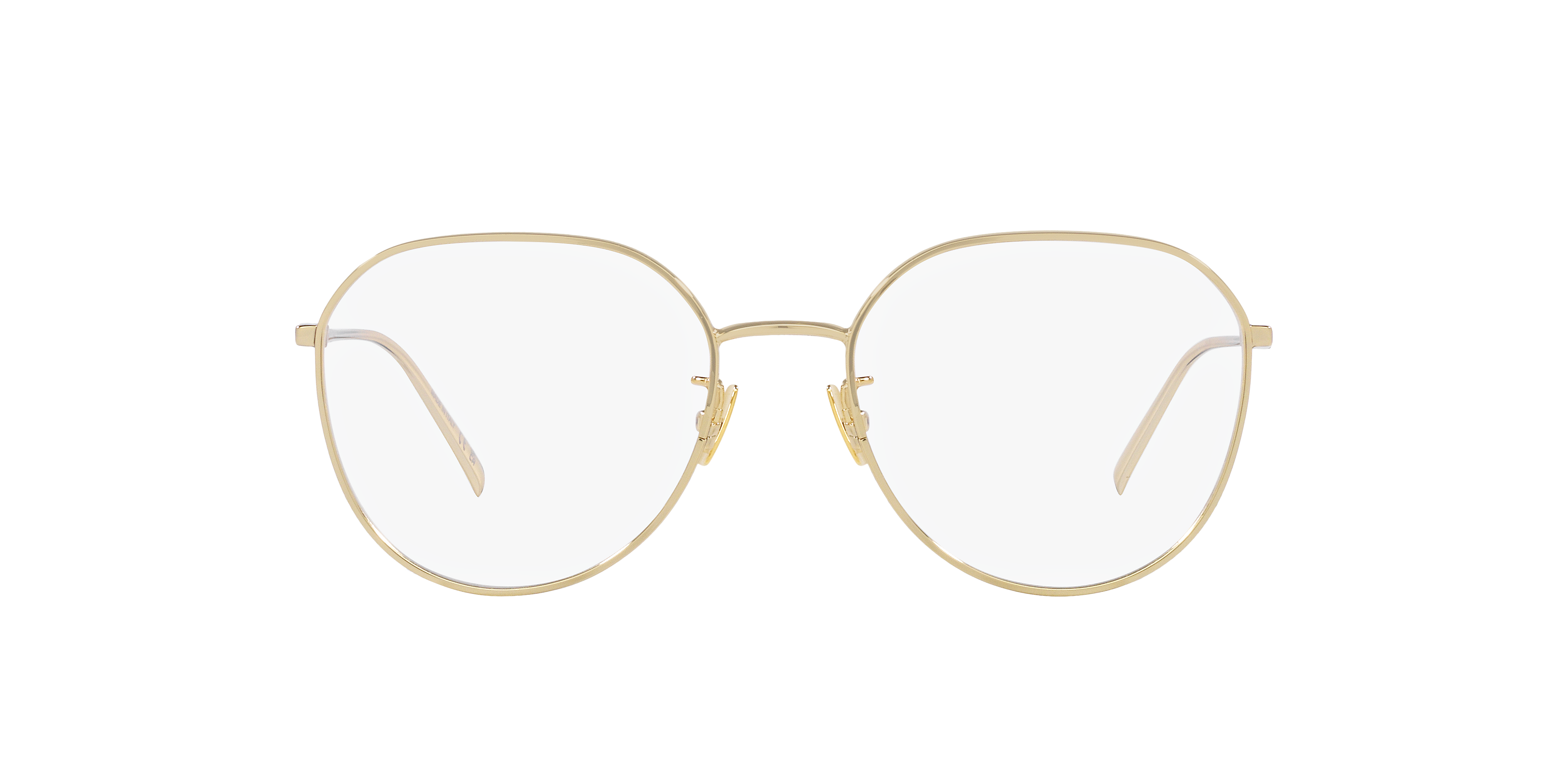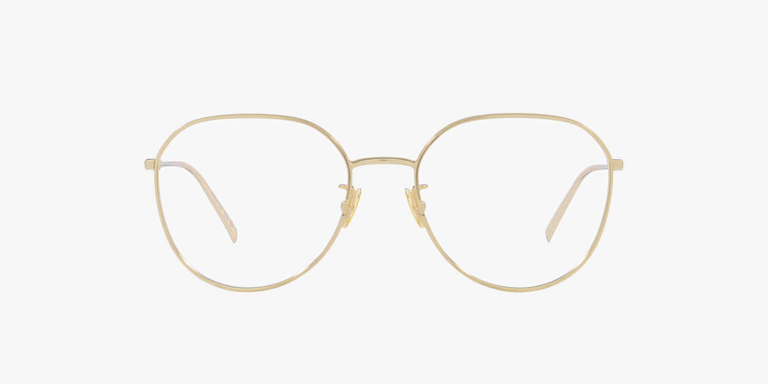 Elevate your style quotient with these round-shaped optical glasses from Saint Laurent. Crafted from durable metal and polished to perfection, the gold frame exudes a timeless appeal. The round shape adds a touch of sophistication to any outfit, making these glasses a must-have accessory for everyday wear. Experience the world in style with these SL 484 frames. Available with prescription lenses.