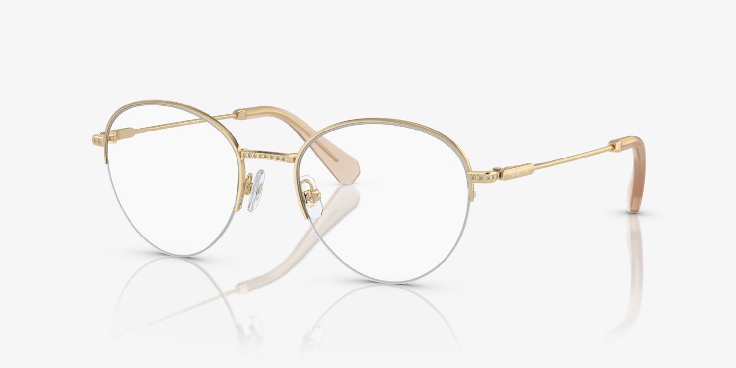 Elevate your fashion by wearing Swarovski SK1004 eyeglasses. The polished pale gold metal frame, coupled with the elegant phantos shape, creates a timeless and sophisticated look. These glasses are adorned with strass, adding a touch of glamour to any outfit. With their sleek design and high-quality craftsmanship, these frames are perfect for everyday wear.