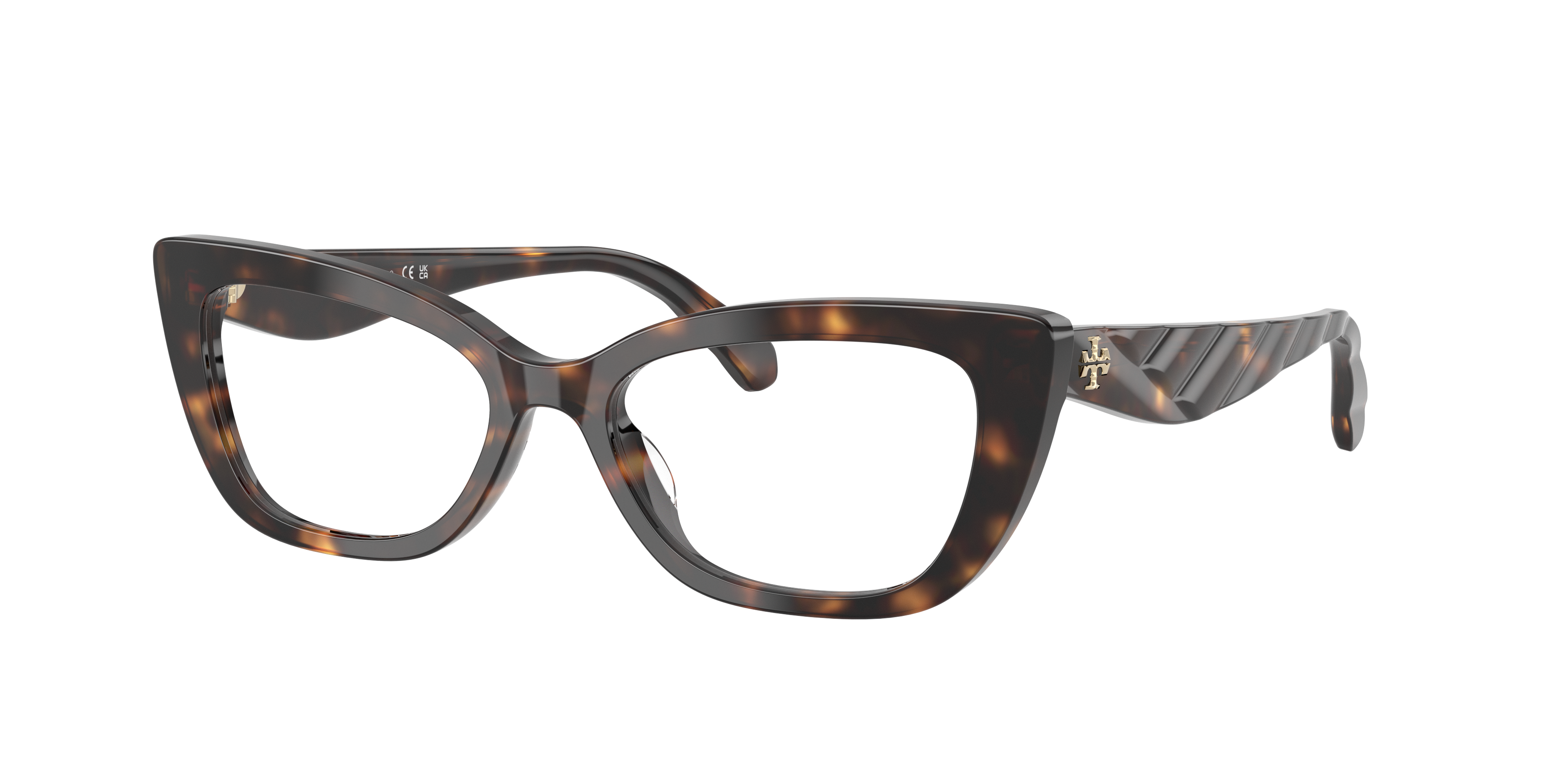 Experience the epitome of elegance and sophistication with Tory Burch TY2155U optical frames. These cay-eye-shaped glasses are crafted from durable acetate in a polished dark tortoise finish, adding a touch of vintage glamour to any look. The saddle bridge ensures a comfortable fit, while the black color contrast adds a modern twist to this timeless design. Embrace your unique style with these statement-making glasses. Available with prescription lenses.