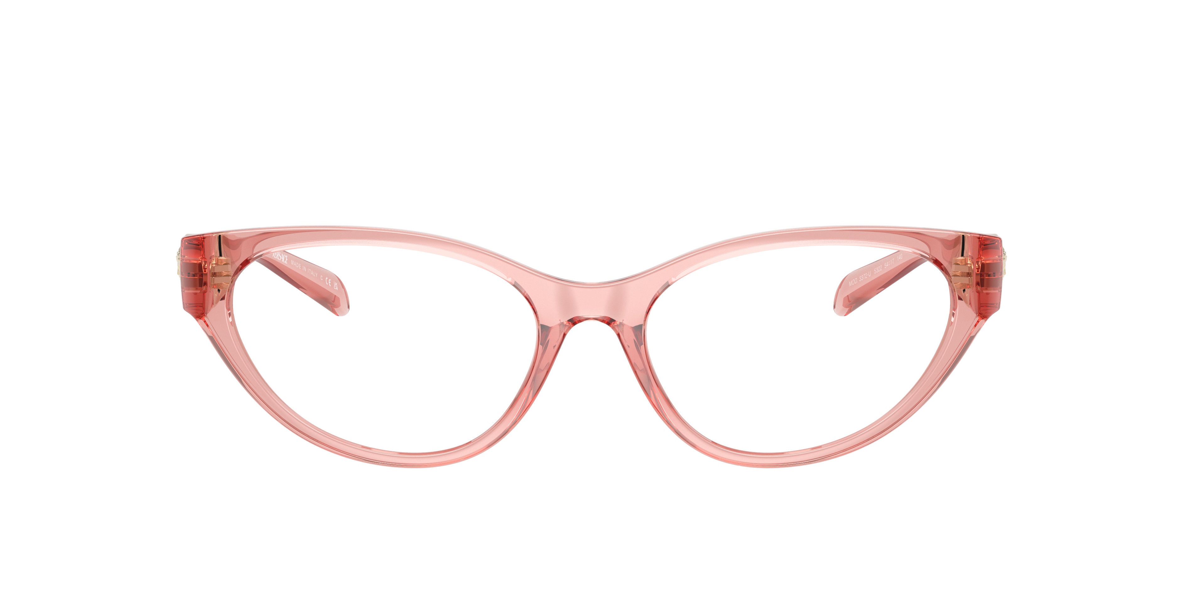 Discover the meticulous craftsmanship that unites style and optical functionality in Versace VE3372U eyeglasses. The cay-eye shape, combined with a polished transparent pink frame color, adds a touch of sophistication to any look. These glasses features a unique design, making them a must-have accessory for fashion-forward individuals. Embrace the glamourous side of life with these stunning frames from Versace. Available with prescription lenses.