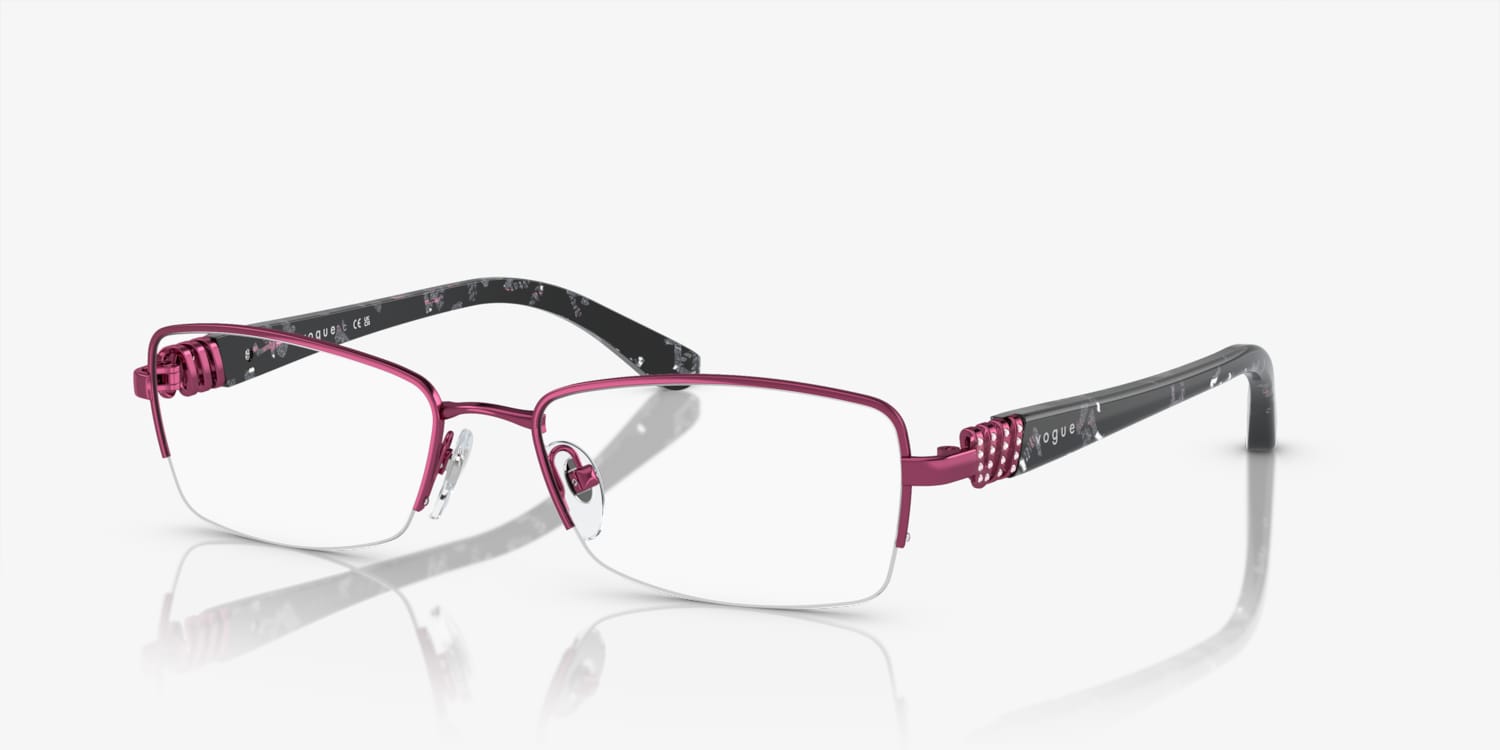 Elevate your style quotient with VO3813B from the house of Vogue. The polished copper color and rectangle shape give a modern twist to the traditional design. Crafted from durable steel, these frames are designed to last. Featuring strass embellishments for added glamour, these glasses are not just a fashion accessory but also an item that combines style and practicality. Available with prescription lenses.