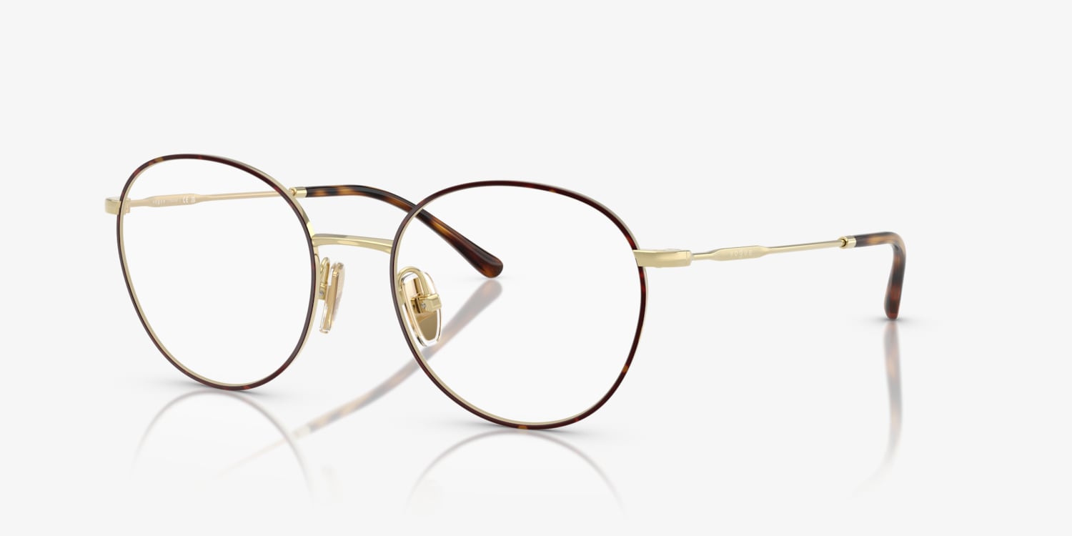 Introducing the Vogue Eyewear VO4280T glasses, a perfect blend of style and comfort. These frames are crafted from titanium, known for its lightweight and durable properties. The polished top havana/light gold color adds a touch of sophistication to your look, while the phantos shape creates a timeless appeal. The frame is also available in a black/gold version. With these shades, you can elevate your fashion game while ensuring optimal vision. Available with prescription lenses.