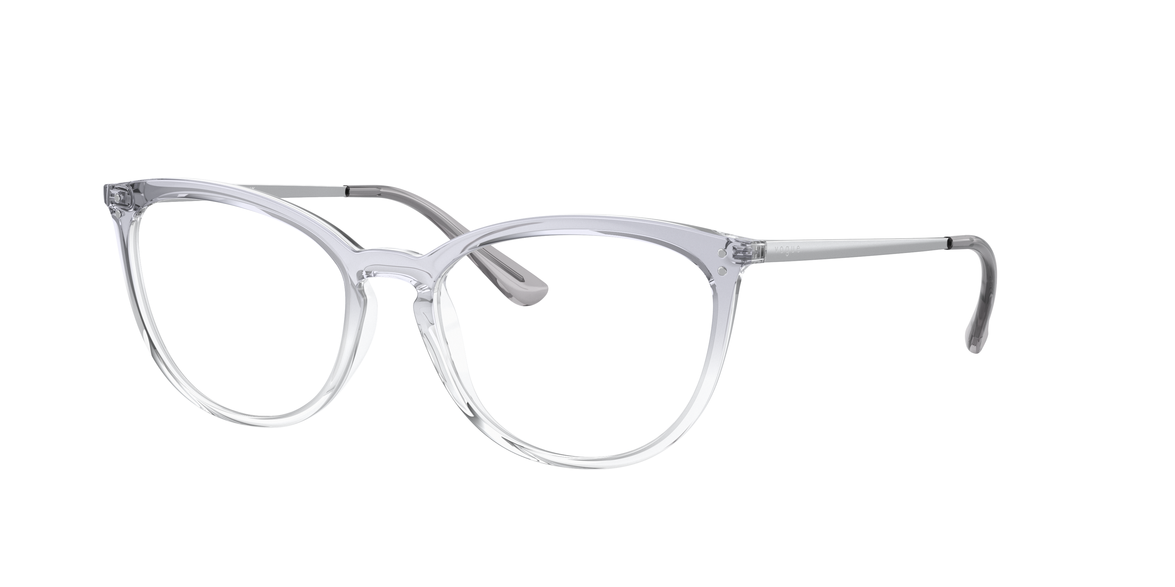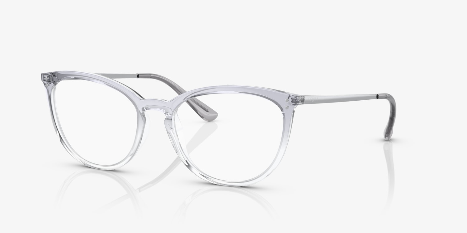 Elevate your look with a pair of Vogue Eyewear VO5276 eyeglasses. These cat eye-shaped glasses feature a polished top gradient blue/crystal frame that adds a touch of sophistication to any outfit. The key bridge design provides added comfort and style. Embrace your individuality and choose these unique eyeglasses as your new fashion accessory. Available with prescription lenses.