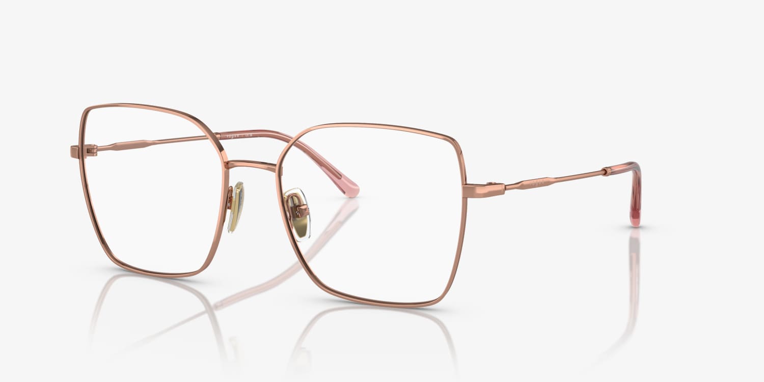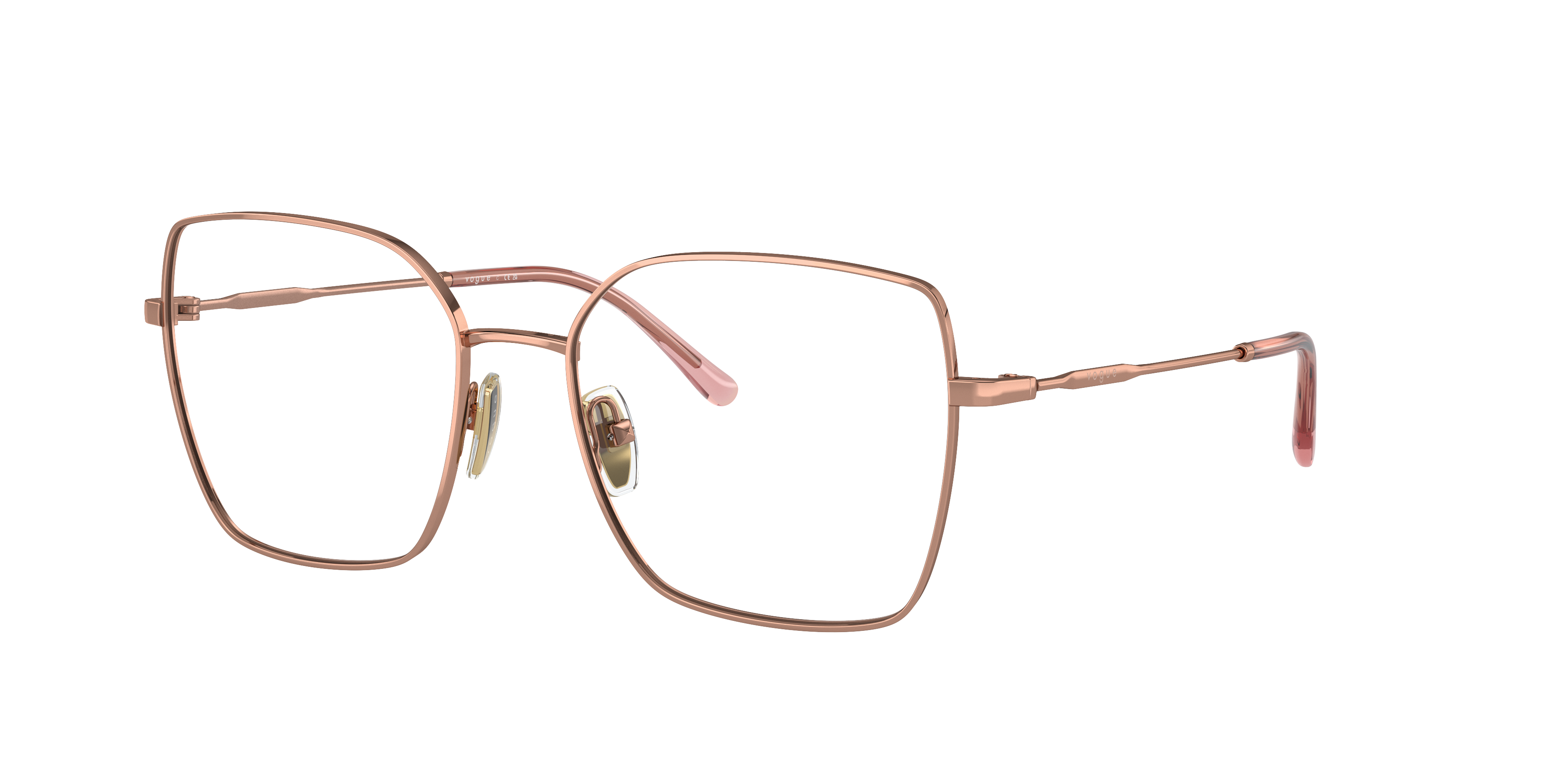 Introducing Vogue Eyewear VO4274 optical glasses, a perfect blend of style and comfort. These irregular-shaped frames are crafted from durable metal and polished to a high shine, offering a modern twist on a timeless design. The rose gold frame color adds a touch of elegance, making these glasses ideal for everyday wear. With their unique design and quality craftsmanship, you'll be looking stylish while staying practical with these shades. Available with prescription lenses.