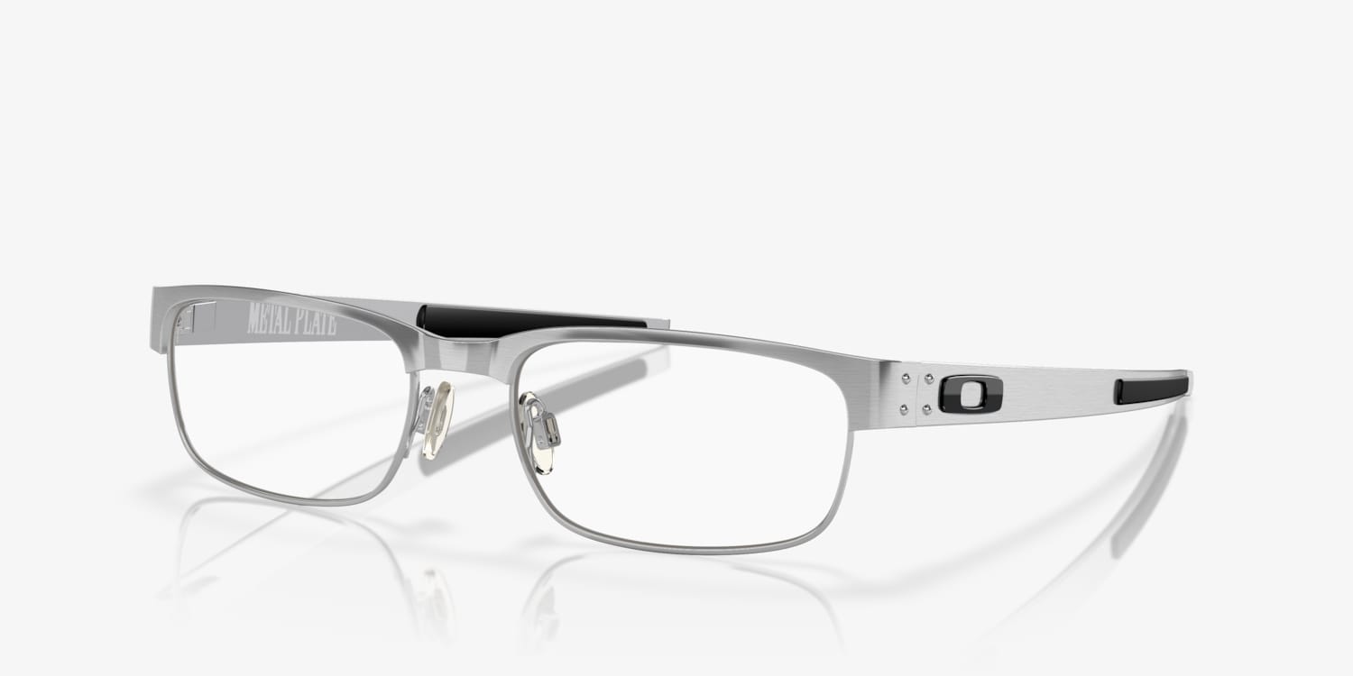 Elevate your fashion while optimizing functionality with Oakley Metal Plate™ eyeglasses. Crafted from titanium, these frames are lightweight and durable. The rectangle shape adds a modern touch to any look, while the matte finish in a brushed chrome color gives them a sleek and sophisticated appearance. These glasses are not only stylish but also versatile enough for everyday wear.