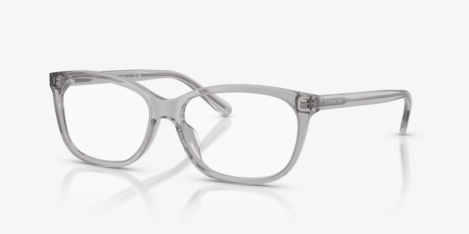 Elevate your style while keeping it effortlessly chic with Coach HC6139U eyeglasses. The pillow shape and polished finish give these glasses a unique, modern aesthetic. Crafted from high-quality acetate, the frame is durable and lightweight. The transparent grey color adds a touch of sophistication to any look. These frames are not only stylish but versatile as well.