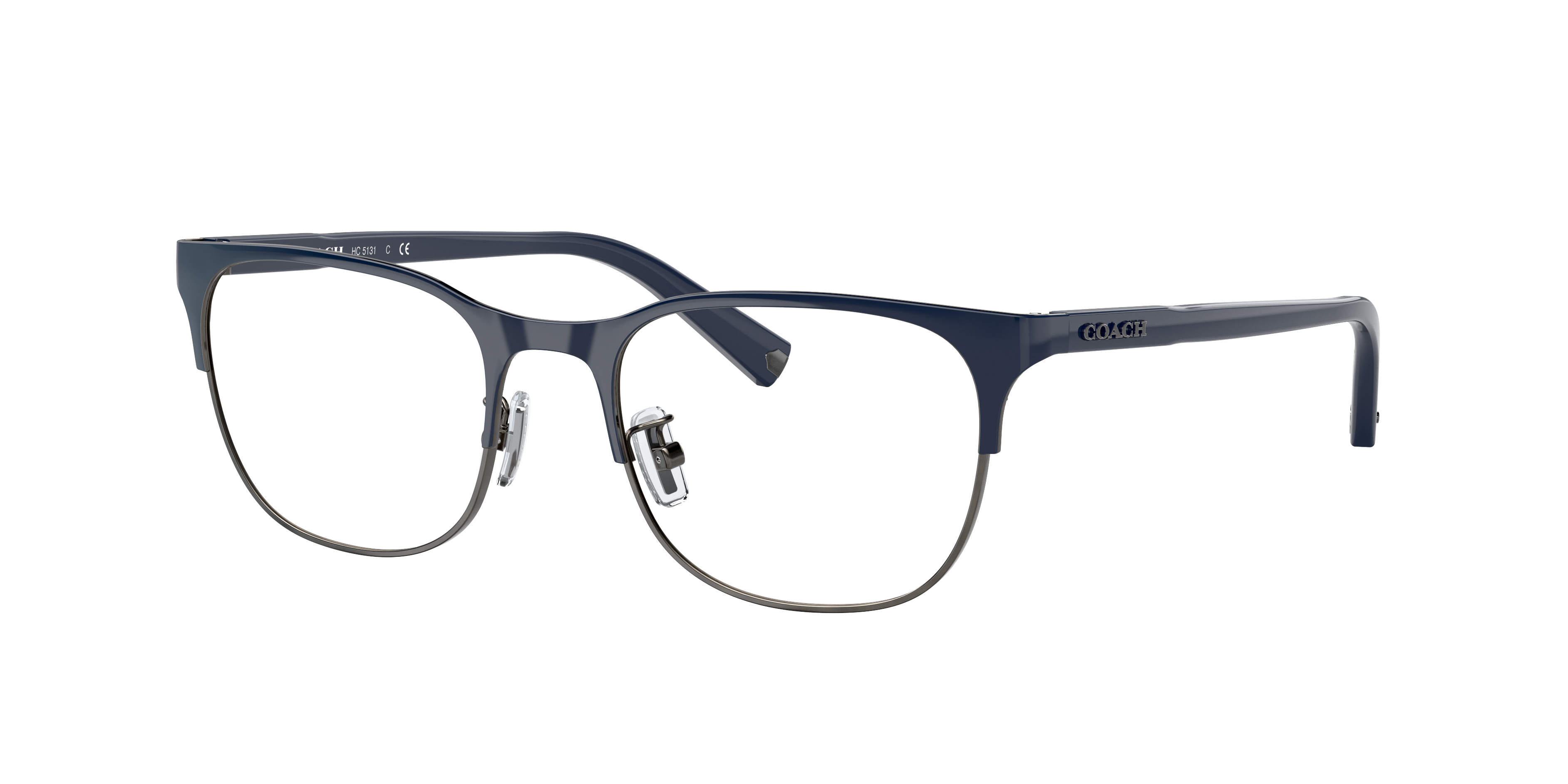 Elevate your style quotient with the round-shaped Coach HC5131 eyeglasses. Crafted from durable metal, these frames feature a polished finish that adds a touch of elegance to any look. The navy and gunmetal color scheme creates a sophisticated contrast, making these glasses stand out. The round shape adds a timeless appeal that complements any face shape. Available with prescription lenses.