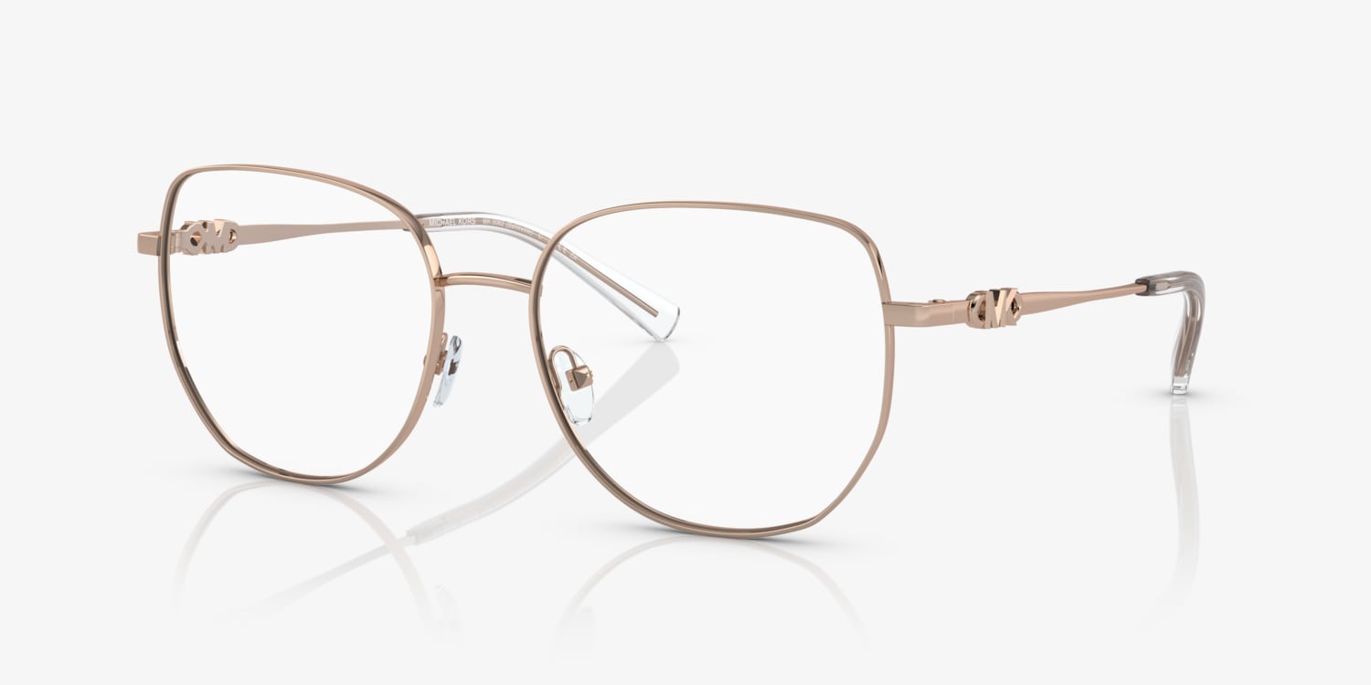 Elevate your fashion to the next level with Michael Kors Belleville optical glasses. The square shape and polished metal frame, crafted from durable materials, give these glasses a sleek and sophisticated look. The rose gold color adds a touch of glamour, making these frames a perfect choice for everyday wear. Embrace your unique style with this fashionable pair of shades. Available with prescription lenses.