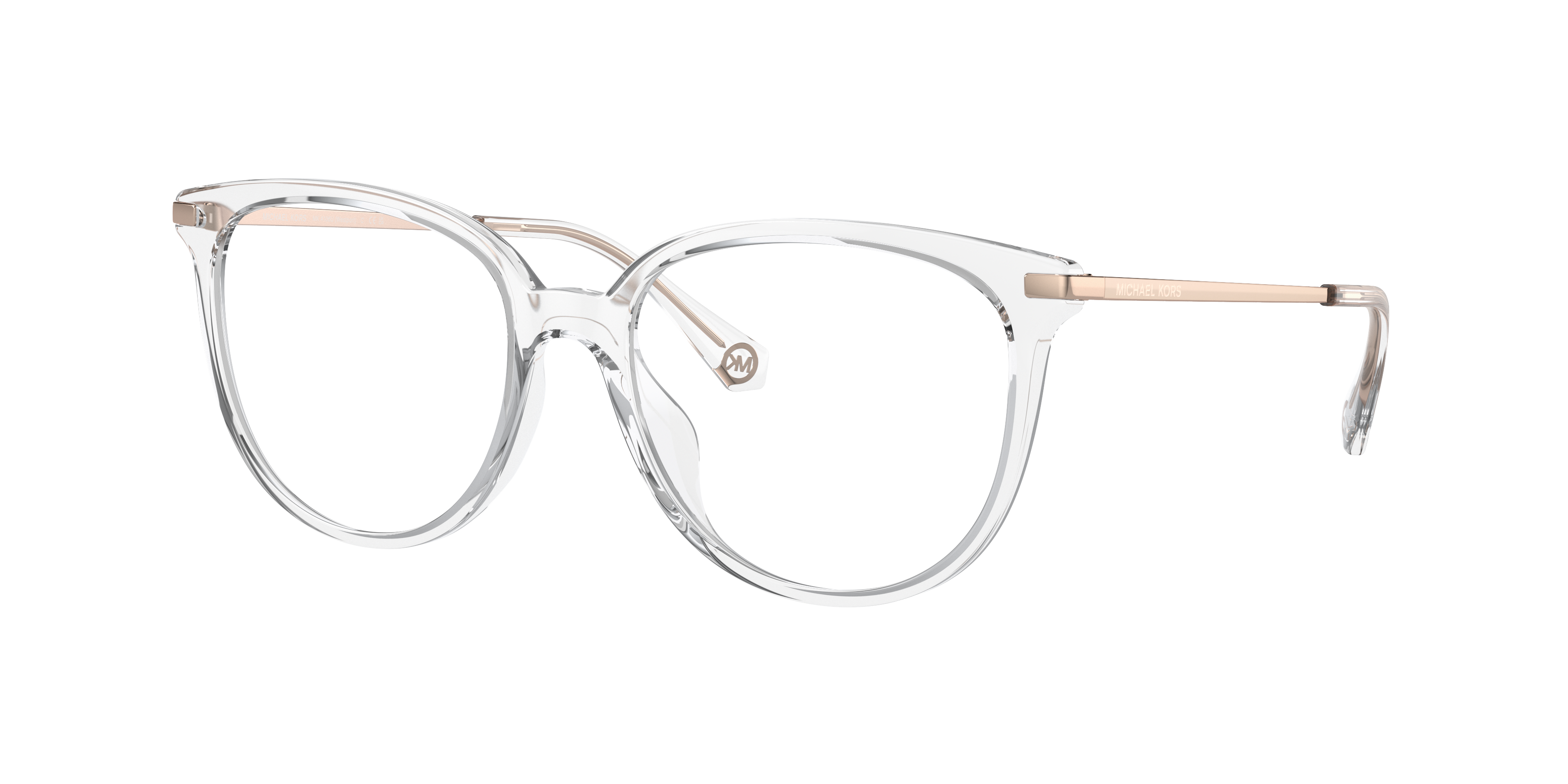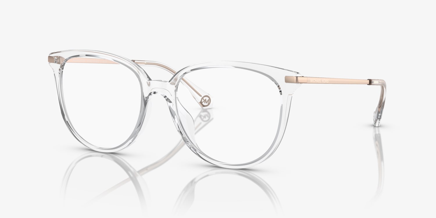 Elevate your fashion and optical standards with Michael Kors Westport Optical. The round shape and polished clear transparent frame color offer a modern twist on a timeless style. The frame color is complemented by the black accent detail, adding a touch of sophistication to these glasses. These frames are versatile and can be paired with any outfit for a stylish look. Available with prescription lenses.