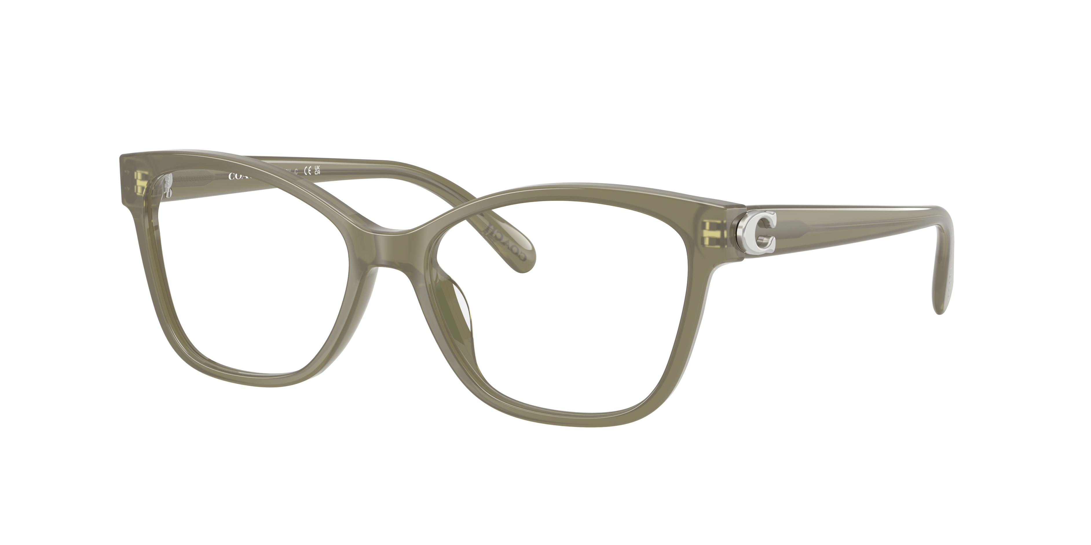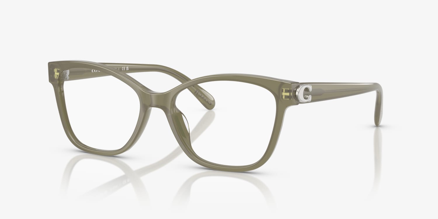 Elevate your fashion and optical utility with Coach HC6246U. The butterfly shape, crafted from acetate, offers a unique and stylish look. The polished milky moss color frame adds a touch of elegance to these glasses. These frames are designed for those who want to make a statement and be the envy of all their friends. Available with prescription lenses.