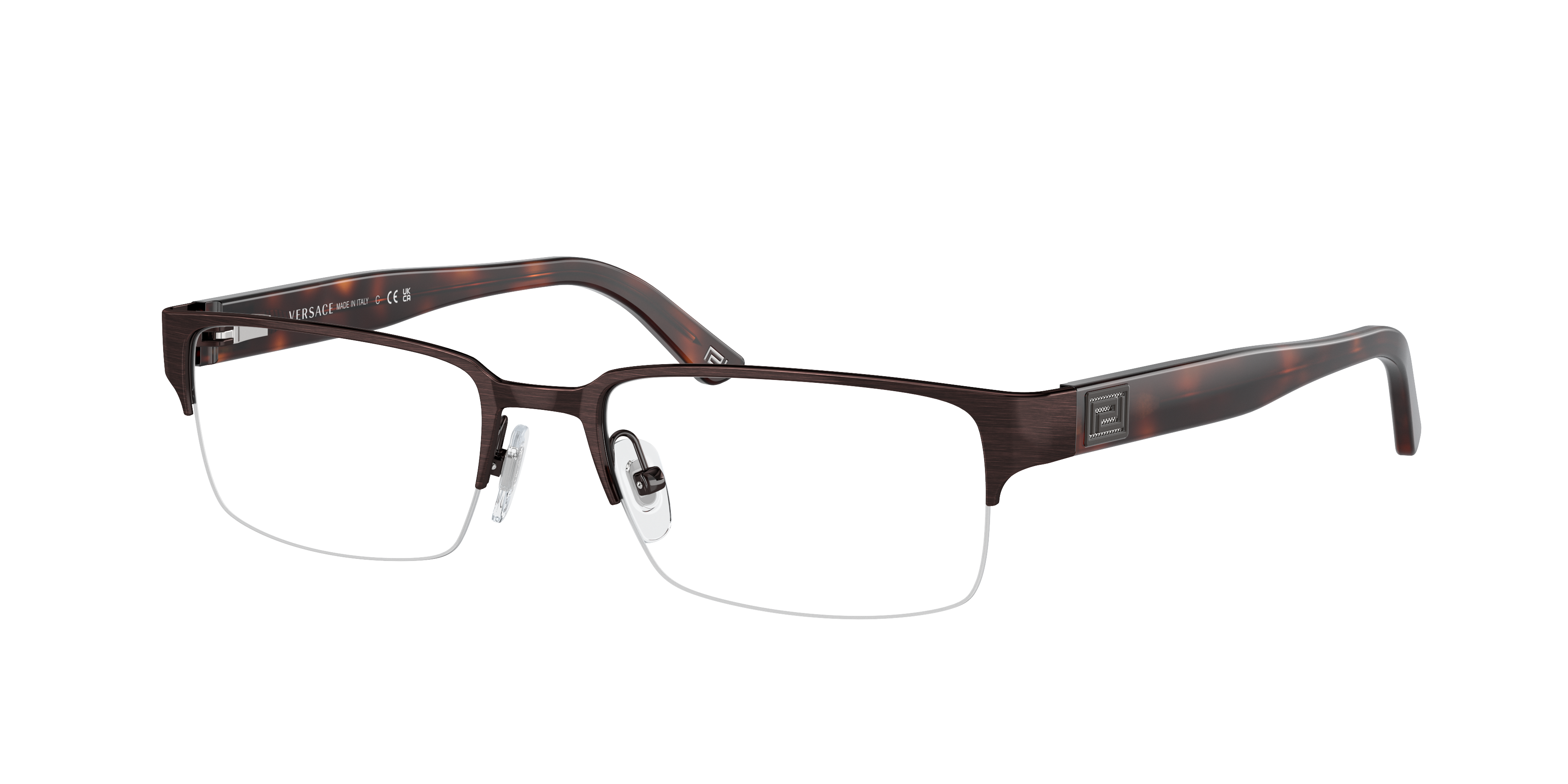 Experience the epitome of luxury with Versace VE1184 eyeglasses. The rectangle shape and polished finish give these glasses a sleek, modern look. Crafted from durable metal, these frames are designed to last. The brown color adds a touch of sophistication to any outfit, making these shades a must-have accessory. Available with prescription lenses.