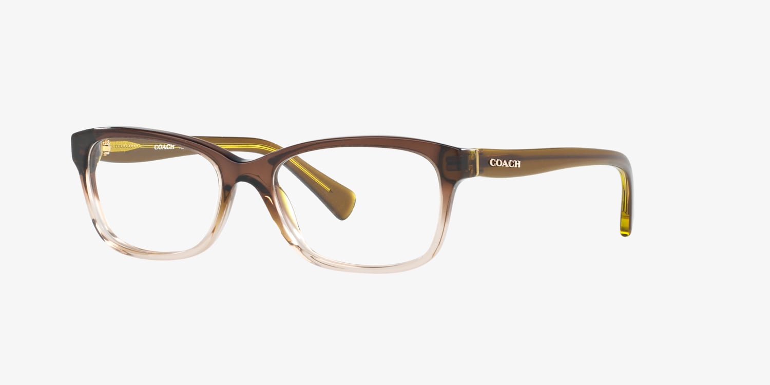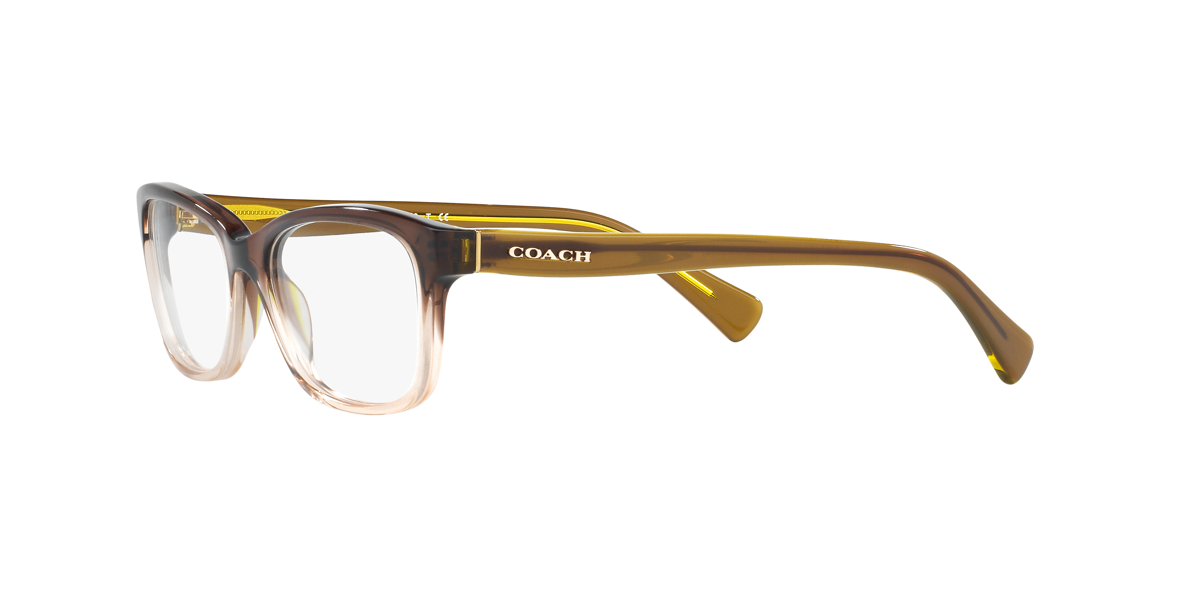 Elevate your fashion game with Coach HC6089 eyeglasses. The rectangle shape and polished finish give these frames a sleek, modern look. Crafted from durable acetate, the transparent olive gradient color adds a pop of color to any outfit. These glasses are not only stylish but also practical. Embrace your unique style with these versatile eyewear.