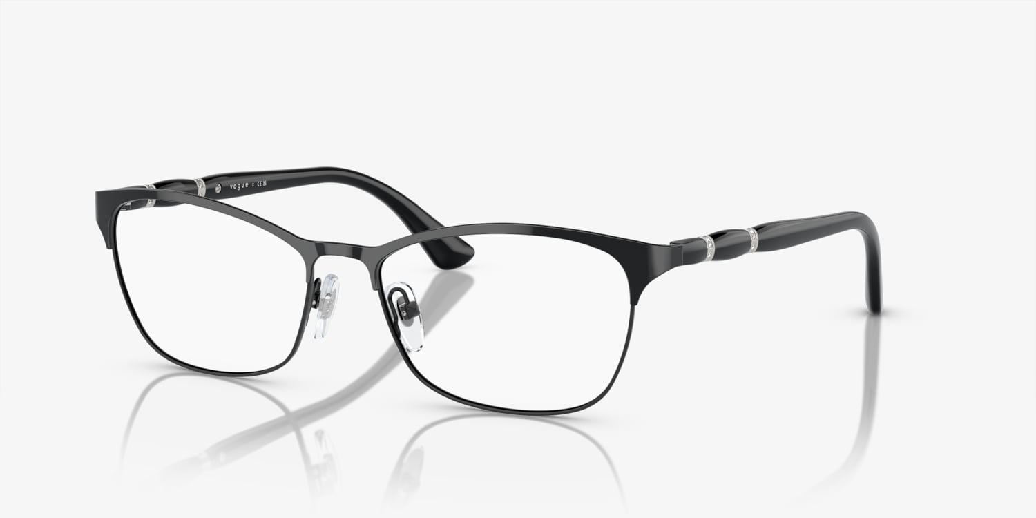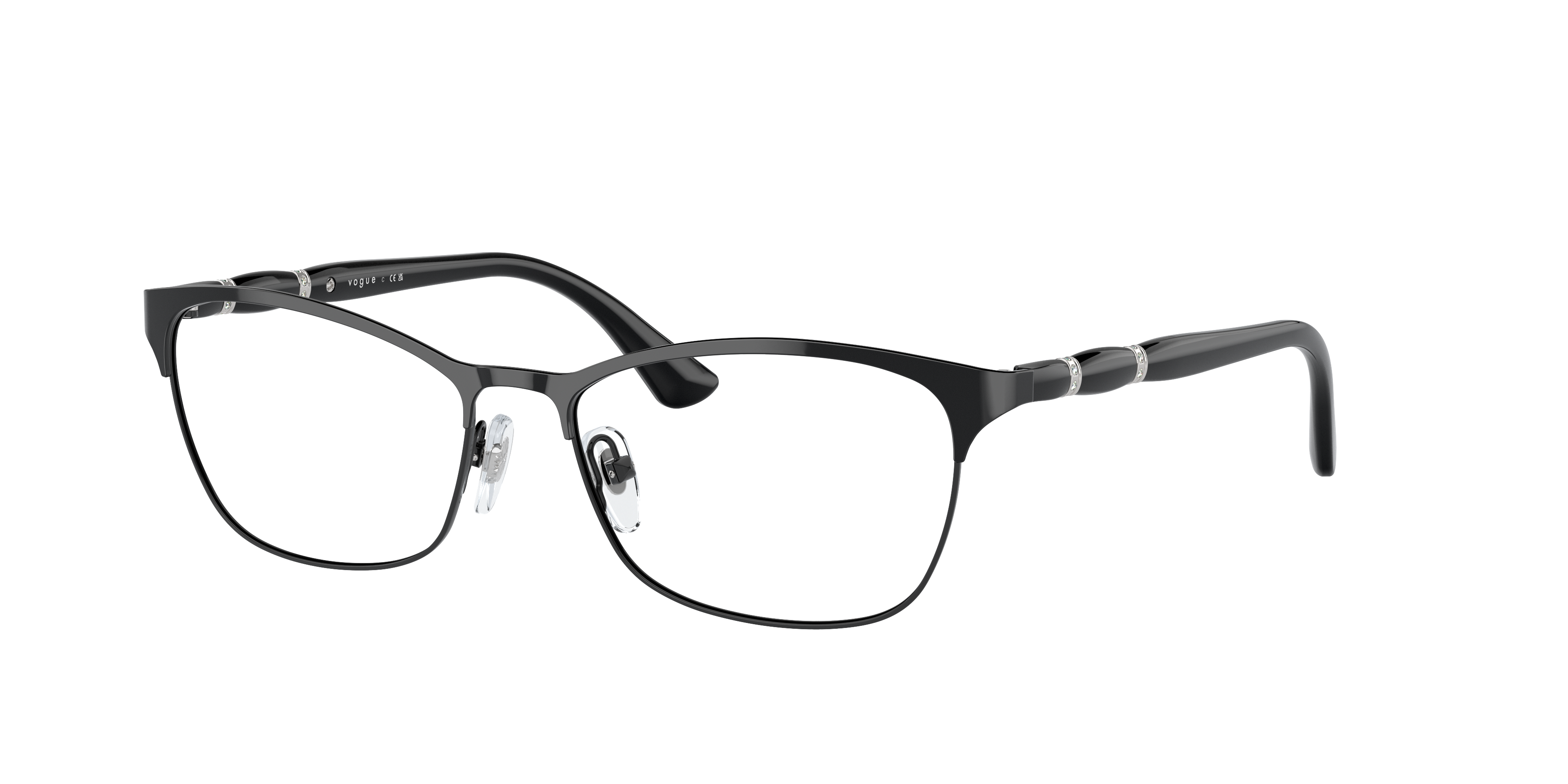 Elevate your fashion and vision integration with Vogue Eyewear VO3987B eyeglasses. The polished black metal frame, accentuated with strass, gives these glasses a glamorous and sophisticated look. The cat eye shape adds a touch of vintage charm to the modern design. These eyeglasses are not only stylish but also practical. Embrace your unique style while enhancing your vision with these stunning frames. Available with prescription lenses.