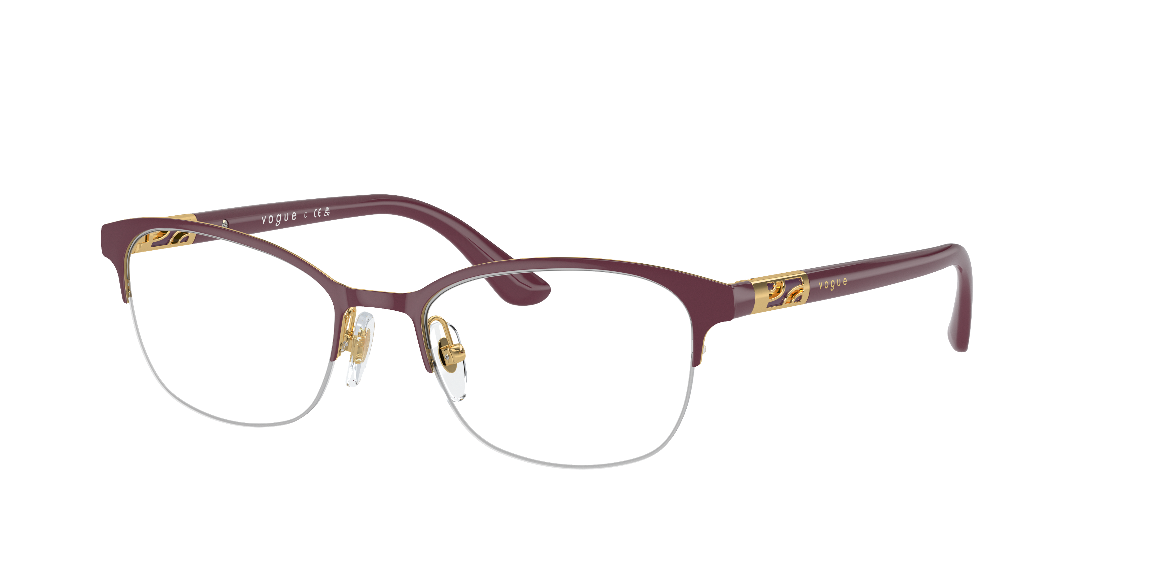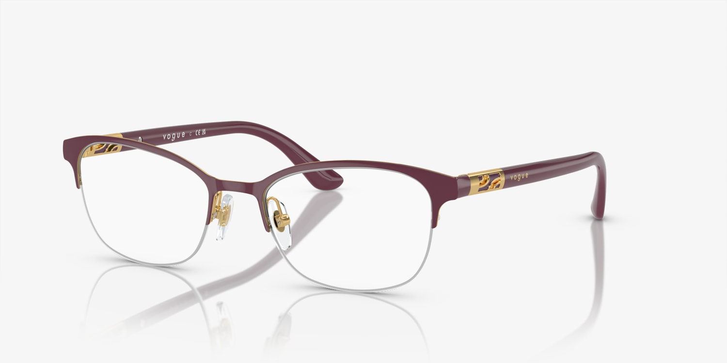 Elevate your fashion while optimizing utility with Vogue Eyewear VO4067 eyeglasses. The pillow shape and polished metal frame, in a striking violet color, exude elegance and sophistication. These shades are not just a fashion statement but also a practical accessory. Embrace the unique and standout from the crowd with these distinctive frames. Available with prescription lenses.