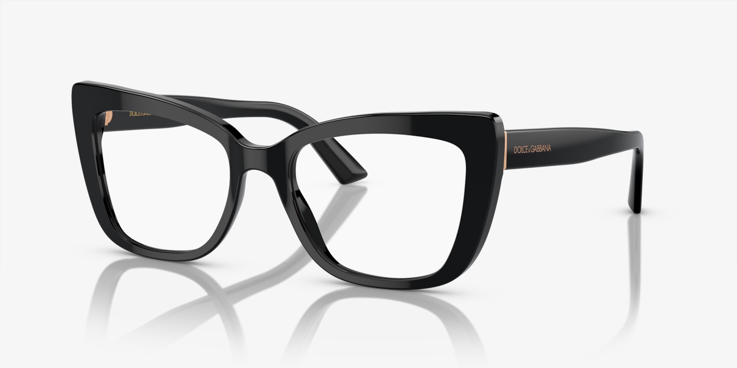 Elevate your fashion and optical standards with Dolce&Gabbana DG3308 eyeglasses. These cat eye-shaped glasses feature a polished black frame made of durable acetate. The frame color, along with the unique design, makes these glasses a stylish accessory for any outfit. With their timeless appeal and superior quality, these frames are a must-have for every fashion-forward individual. Available with prescription lenses.