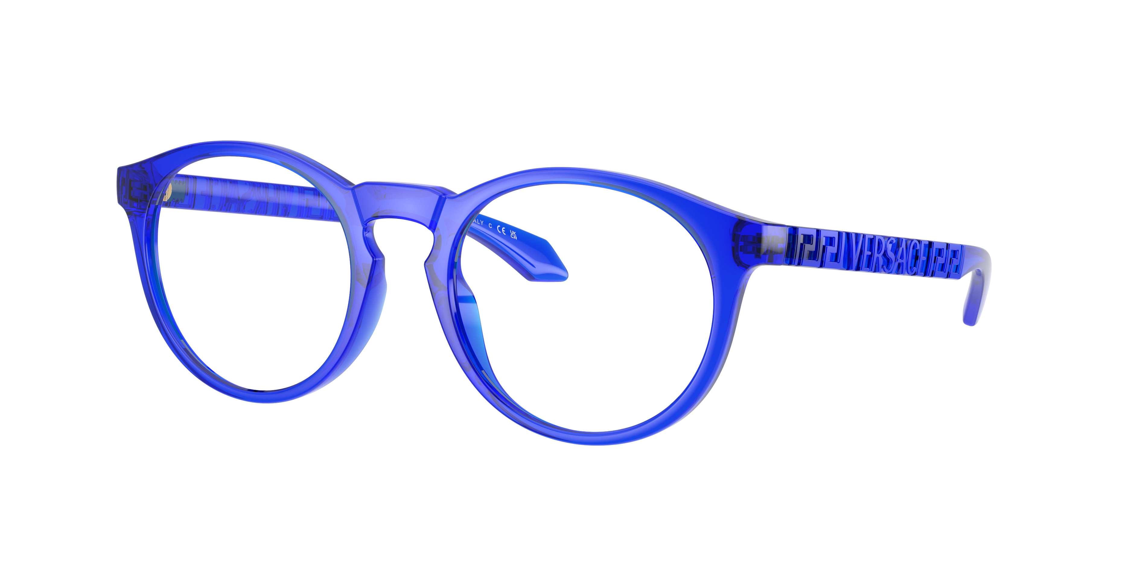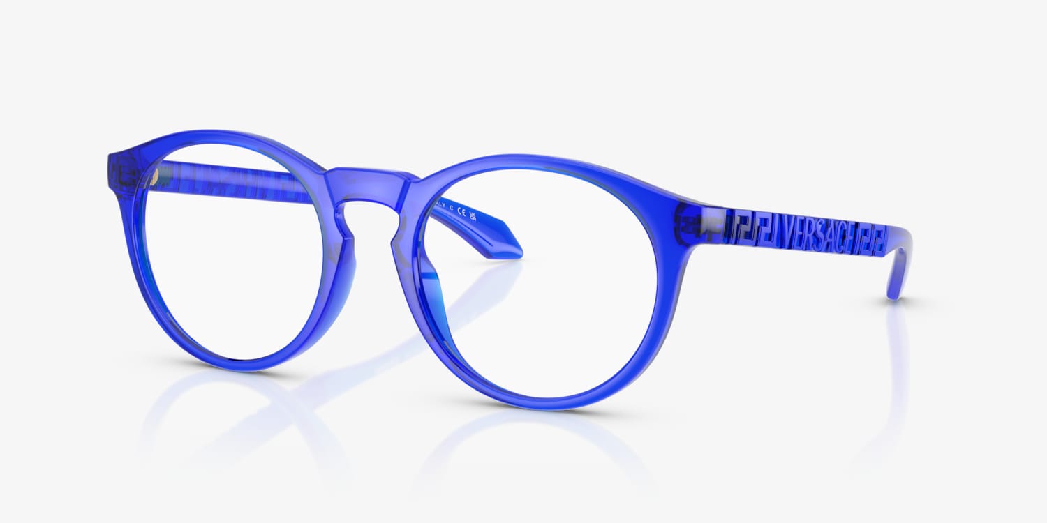 Elevate your fashion standards with Versace VE3355U. These optical glasses feature a phantos shape that is universally flattering and versatile. The transparent blue frame, finished in a shiny treatment, adds a pop of color to any look. Key bridge detailing adds an extra touch of sophistication. Embrace the power of optical fashion with these stunning shades from Versace. Available with prescription lenses.
