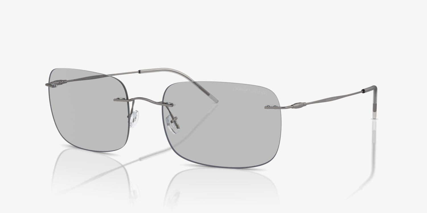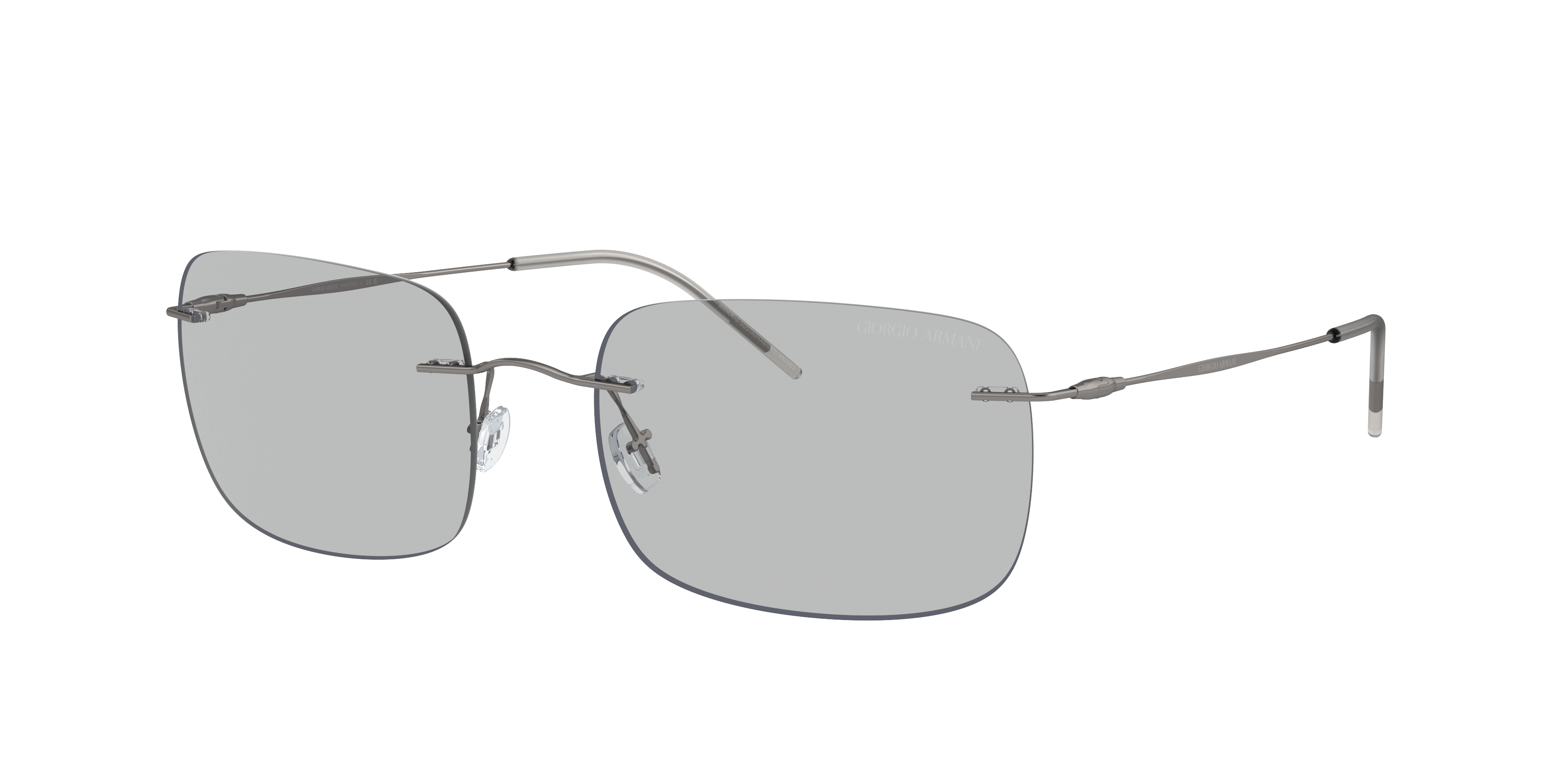 Elevate your style with Giorgio Armani AR1512M. The pillow shape and matte gunmetal frame, crafted from durable metal, give these shades a modern and sophisticated look. The solid light grey lenses provide excellent clarity and sun protection. These glasses are not only stylish but also practical. Embrace the effortless elegance of Giorgio Armani with this stunning pair of shades. Available with prescription lenses.