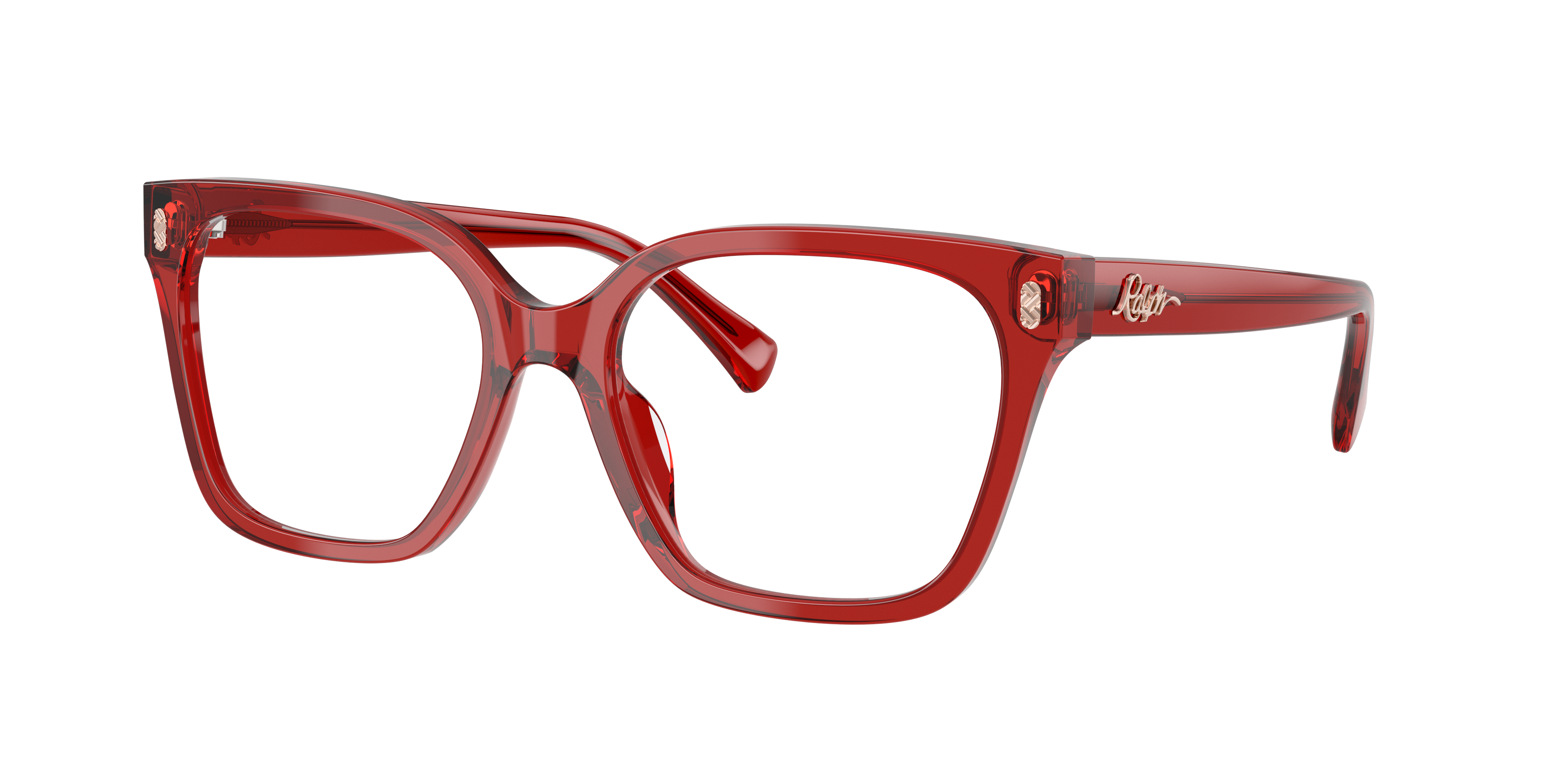 Ralph RA7158U eyeglasses are a perfect blend of style and comfort. Crafted from durable acetate, these square-shaped frames come in a polished, shiny transparent burgundy color that adds a touch of sophistication to any look. The frame is designed to be versatile and can be easily paired with any outfit. These glasses not only enhance your vision but also serve as a fashion accessory. Available with prescription lenses.
