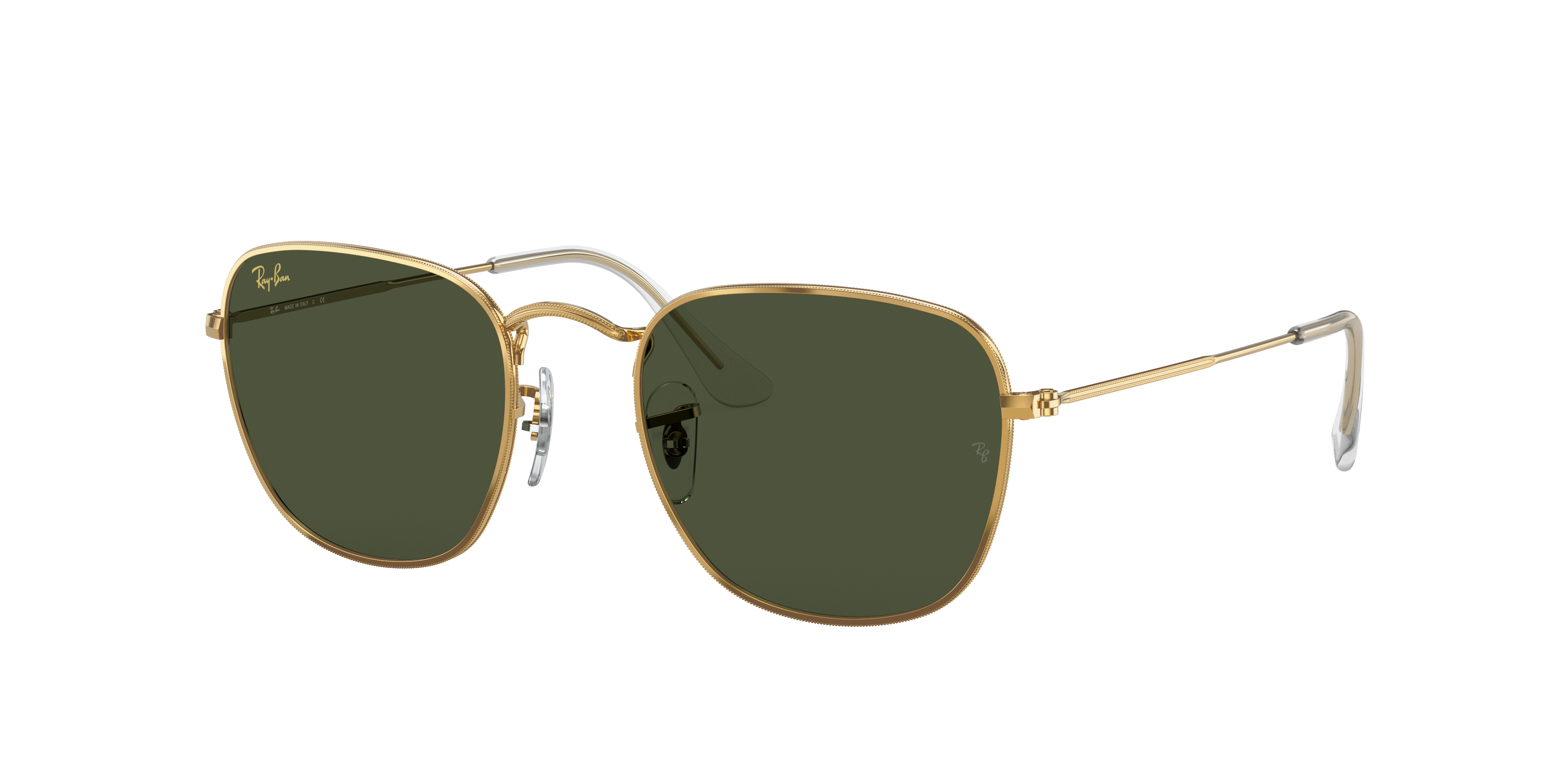 Elevate your style quotient with Ray-Ban Frank sunglasses. These square-shaped glasses feature a polished gold metal frame that exudes elegance and sophistication. The classic green lenses with G-15 treatment provide superior clarity and color contrast, making them ideal for driving or other outdoor activities. These shades also feature the iconic Ray-Ban signature on the temples for a timeless look. Available with prescription lenses.