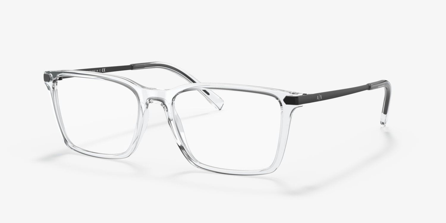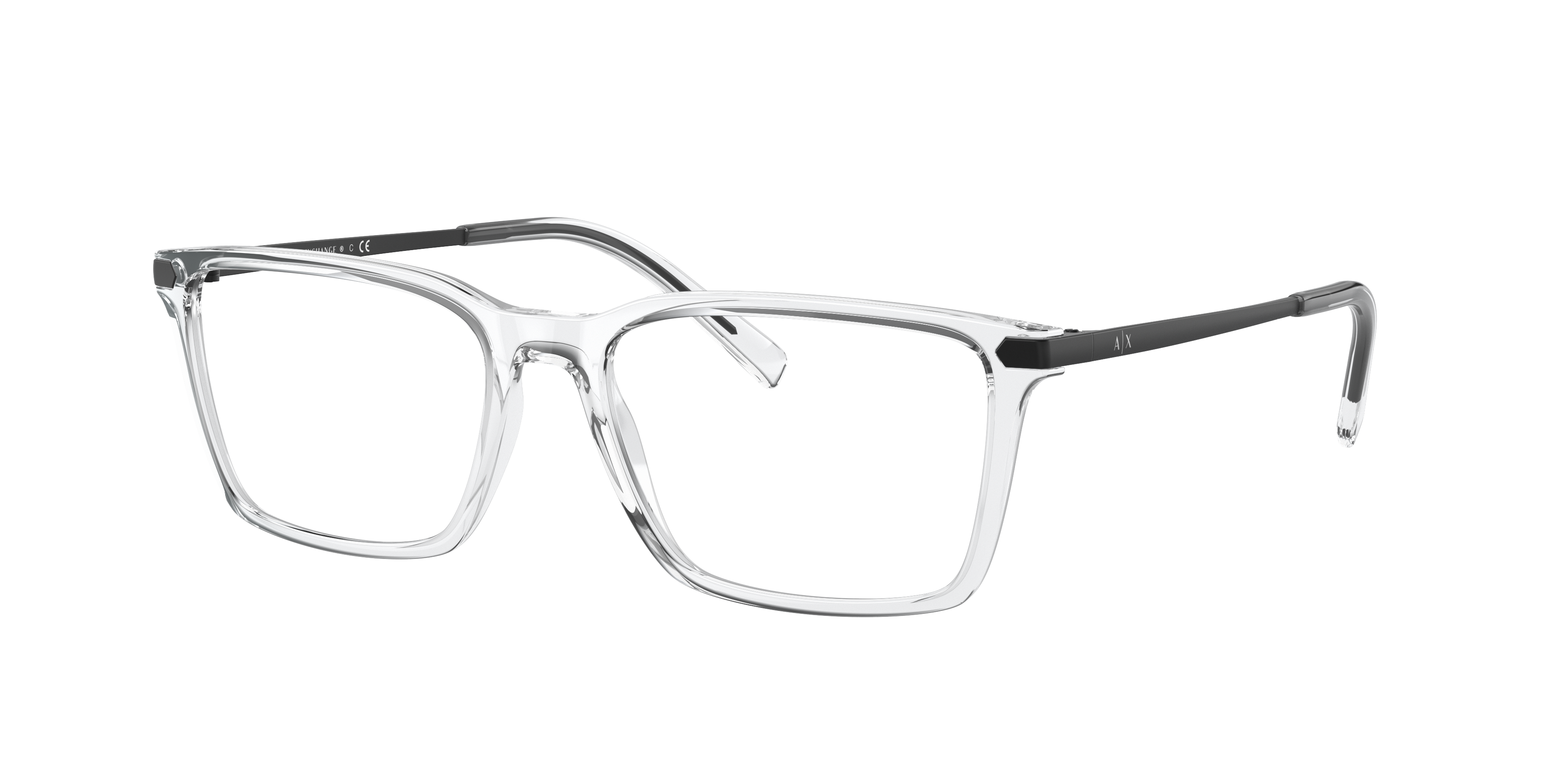 Elevate your fashion with these Armani Exchange AX3077 eyeglasses. The polished black frame, crafted from durable and lightweight material, features a rectangle shape that adds a touch of sophistication to any look. The crystal color finish provides a striking contrast, making these glasses a versatile accessory for everyday wear.
