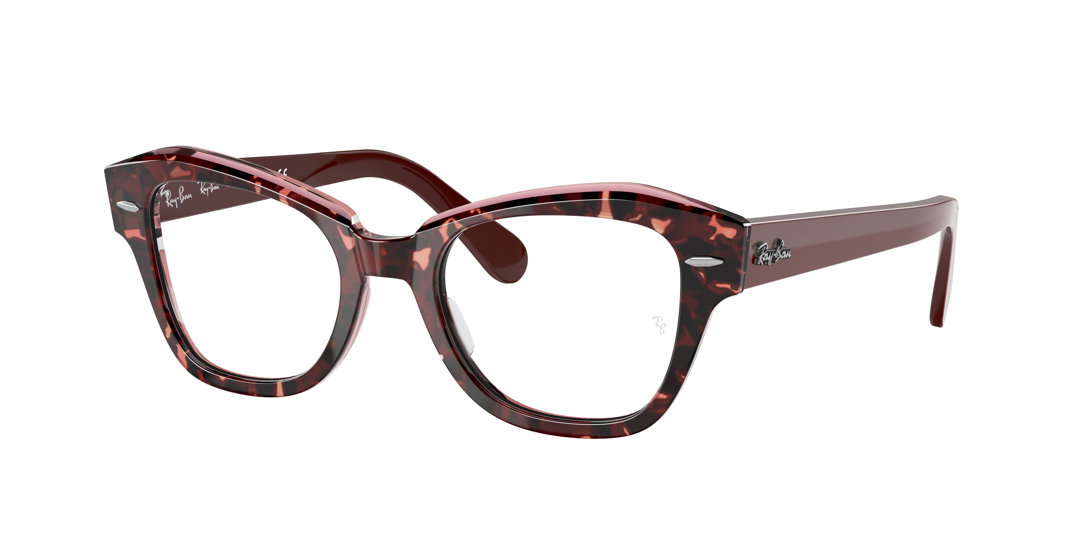 Elevate your eyewear game with Ray-Ban State Street Optics. The irregular shape of the frame adds a unique touch to your look, while the polished finish and havana on transparent purple color give it a sophisticated appeal. Crafted from durable acetate, these glasses are not only stylish but also comfortable to wear.