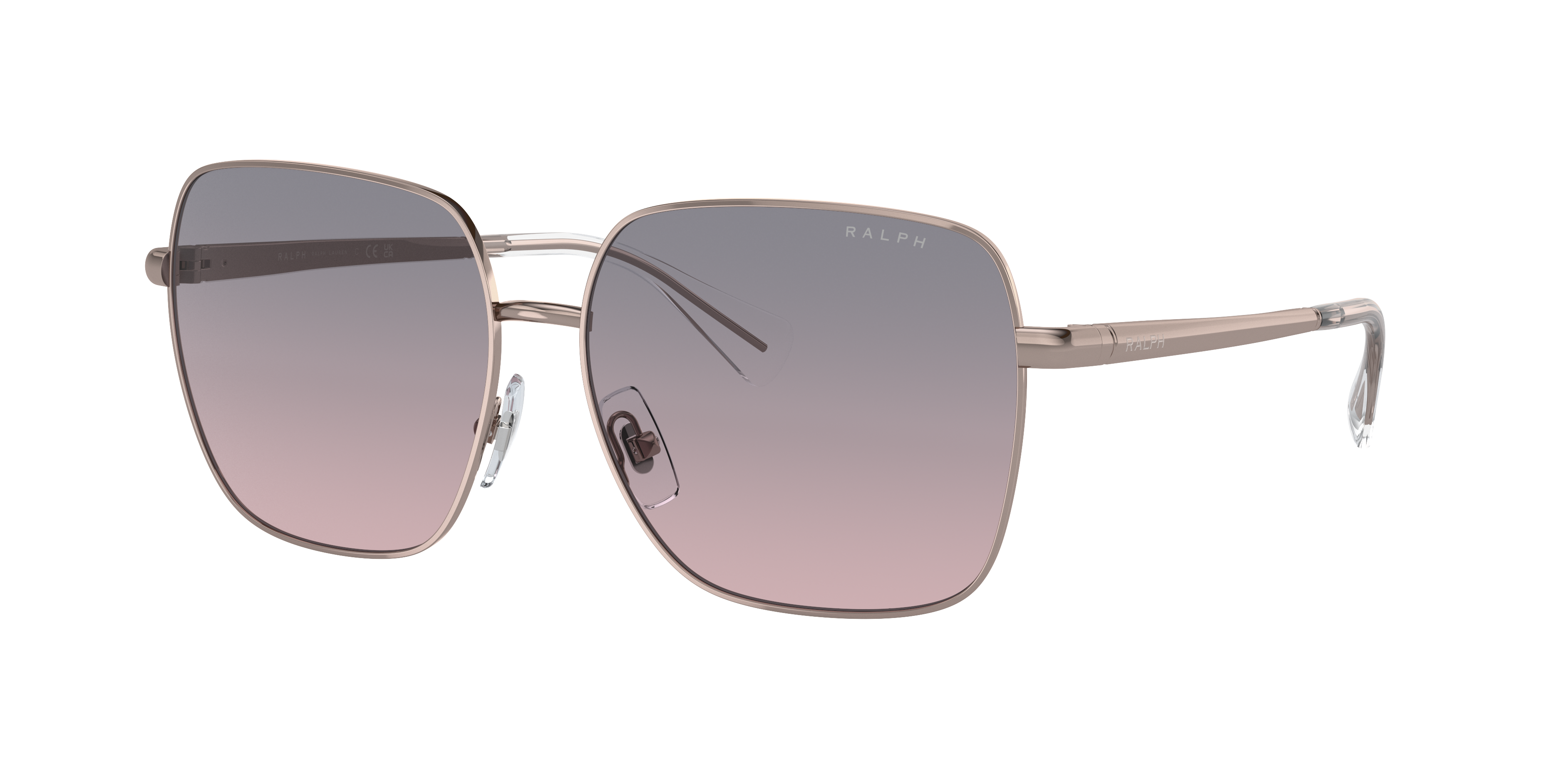 Elevate your style quotient with Ralph RA4142 sunglasses. The square shape and polished finish of the shiny rose gold metal frame add a touch of sophistication to your look. The light brown gradient violet lenses not only provide excellent vision but also add a unique flair to these shades. Embrace the effortless elegance of Ralph while staying on trend. Available with prescription lenses.