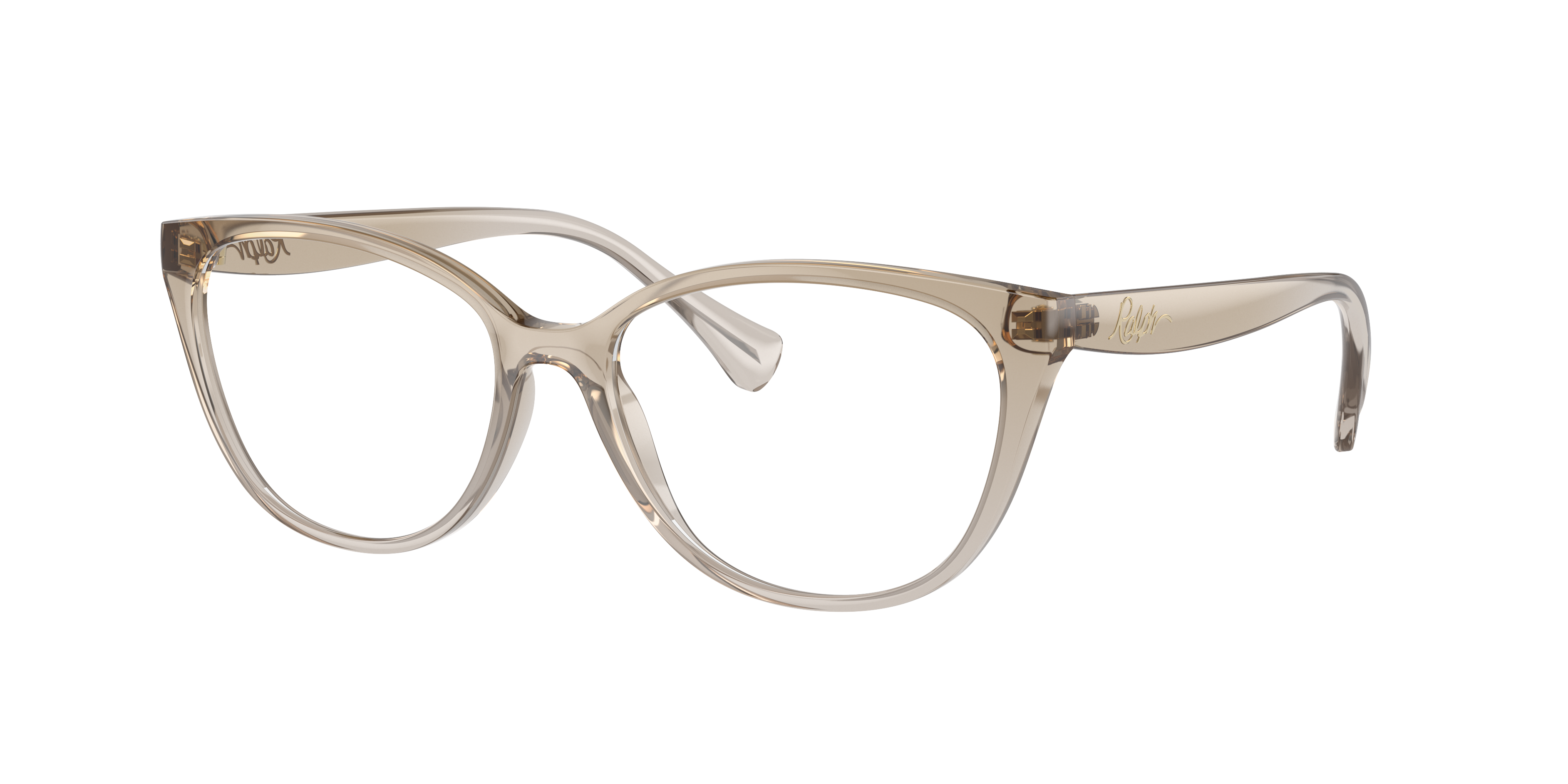 Evoking a sense of charm and sophistication, Ralph RA7135 eyeglasses are a perfect blend of timeless design and contemporary style. The polished shiny trasparent brown frame, coupled with the cat eye shape, create a unique and fashionable look. These eyeglasses are not only stylish but also practical. Embrace your individuality and elevate your eyewear experience with these chic frames. Available with prescription lenses.