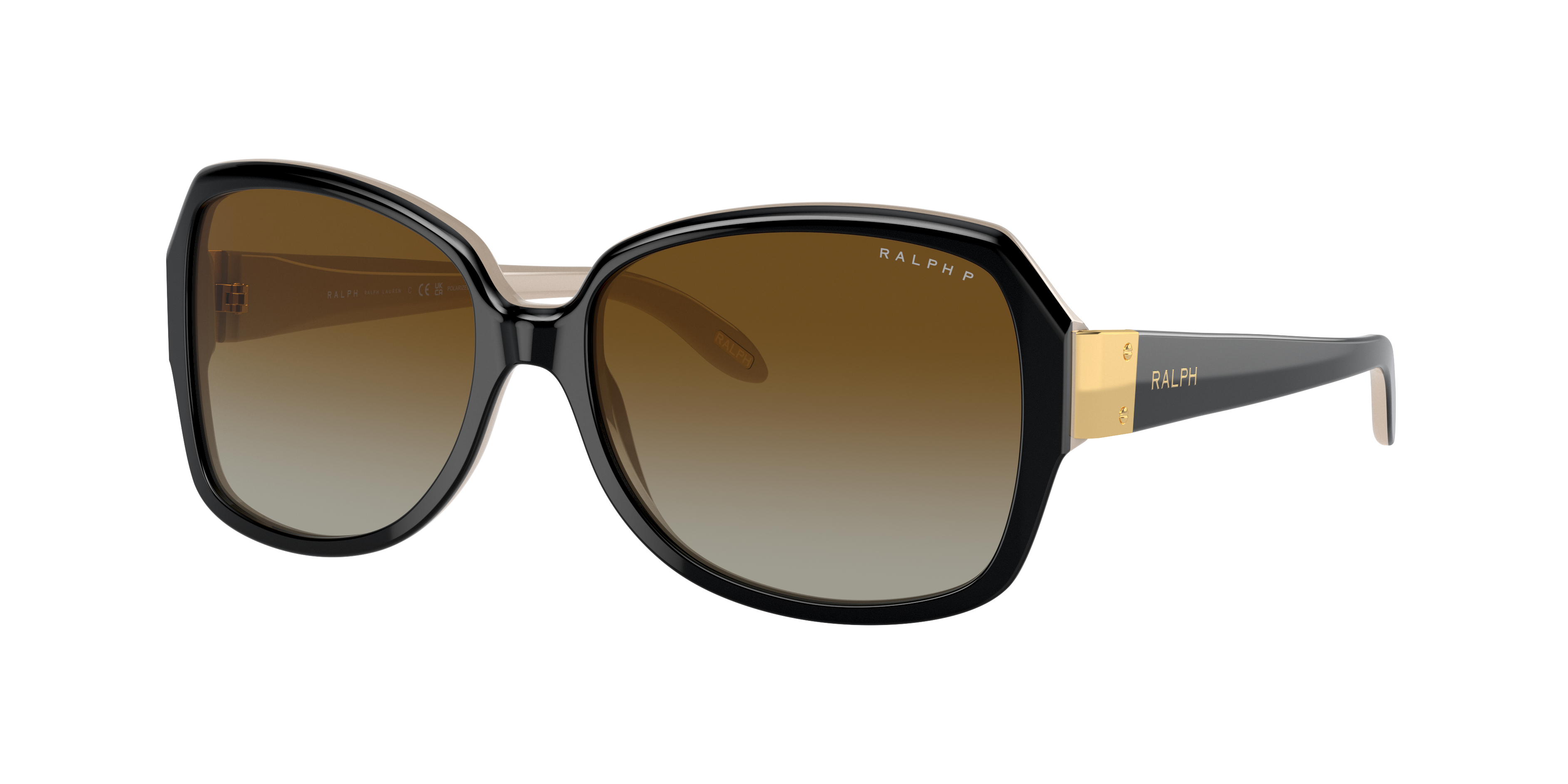 Experience the ideal balance between style and functionality with Ralph RA5138 sunglasses. These square-shaped glasses feature a polished finish, adding a touch of sophistication to any look. The frame is made of durable acetate in a striking shiny black on nude color, complemented by polar gradient brown lenses that offer superior glare protection. The polarized lenses also provide excellent clarity for an enhanced visual experience. Featuring a versatile design, these shades are perfect for those seeking both fashion and practicality. Available with prescription lenses.