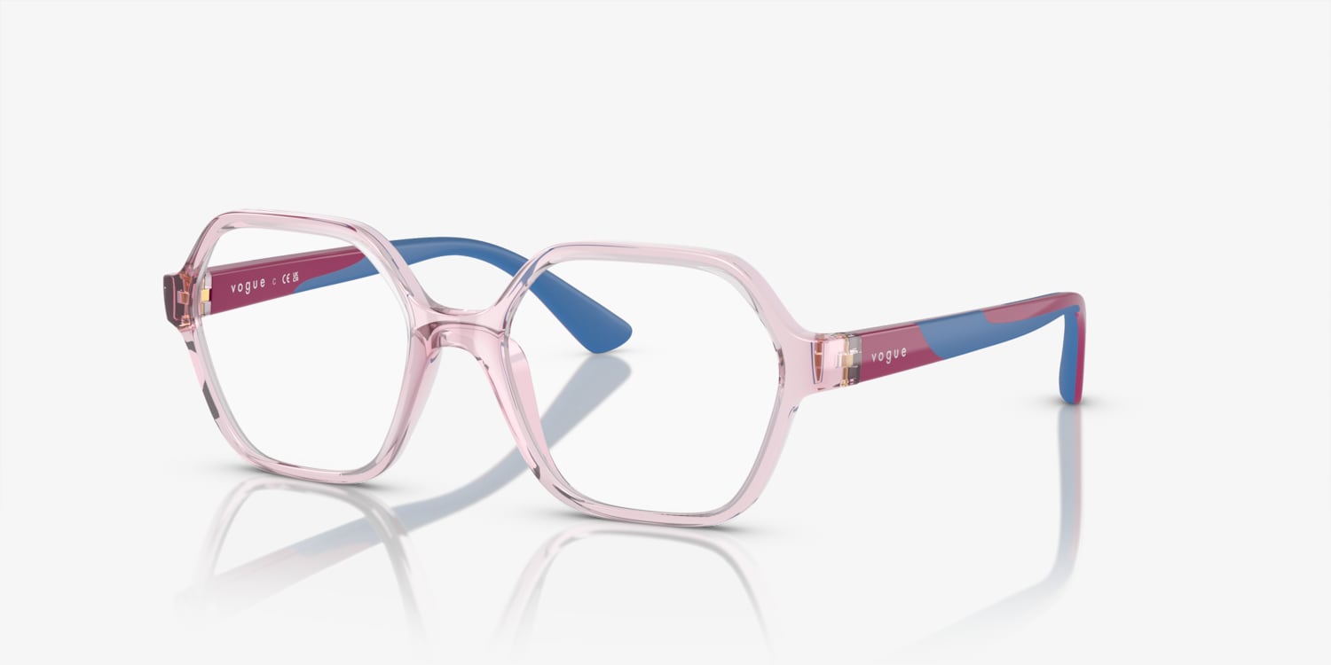 Embrace the unique style and comfort of Vogue Eyewear VY2022. These eyeglasses feature an irregular shape that adds a touch of individuality to any look. The polished, transparent light purple frame color adds a pop of personality while remaining versatile enough to match with any outfit. The saddle bridge ensures a comfortable fit for your little one.