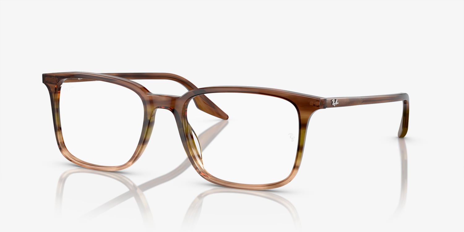 Introducing the Ray-Ban RB5421 Optics, a pair of eyeglasses that seamlessly blend style and functionality. Crafted from durable acetate, these glasses feature a polished striped brown & green frame in a rectangle shape that adds a touch of sophistication to your look. These eyeglasses are versatile enough to suit any face type or personal style.