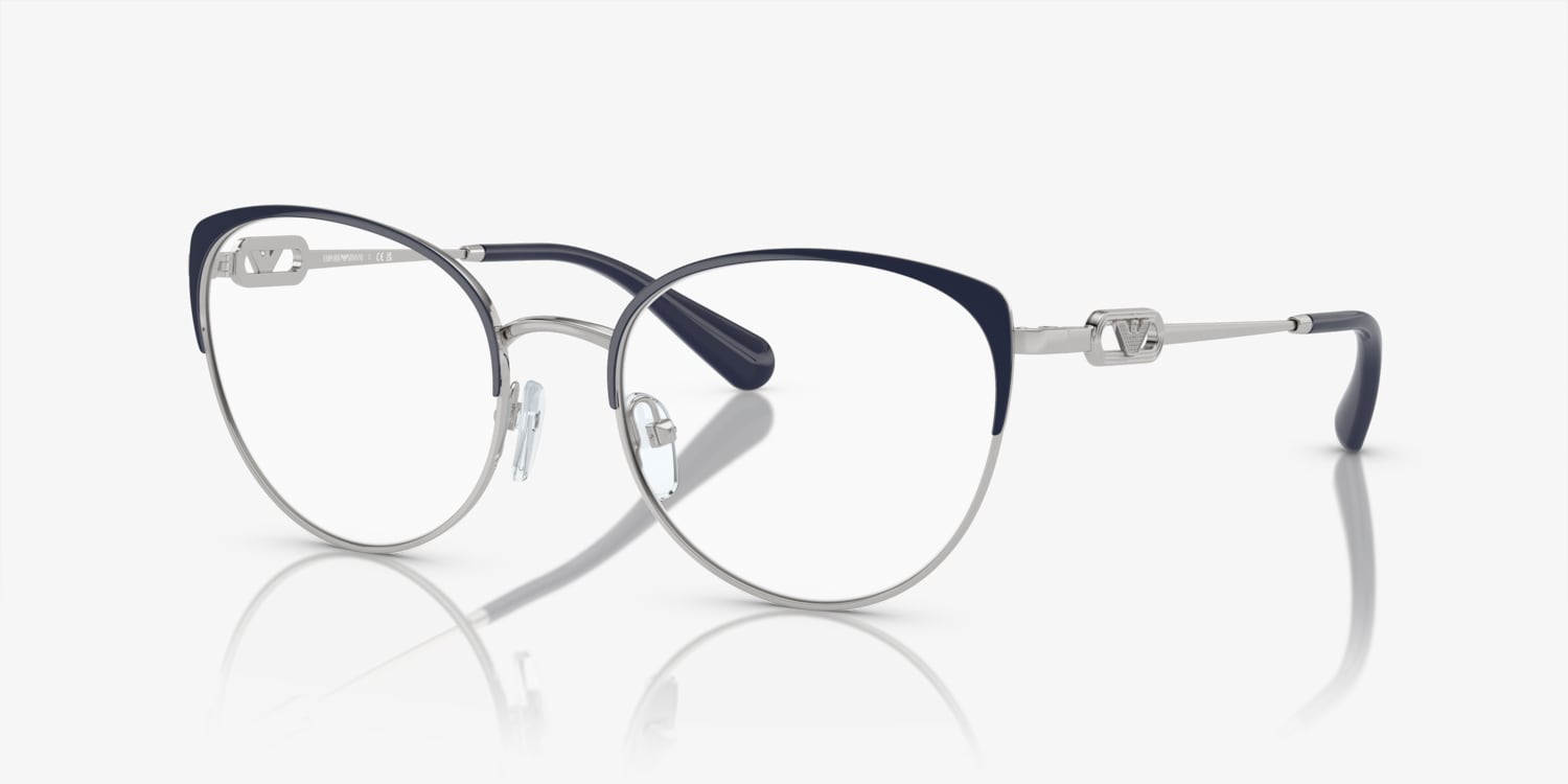 Elevate your fashion and vision integration with Emporio Armani EA1150 eyeglasses. The polished, shiny silver/blue metal frame in a cat eye shape exudes a timeless appeal. These glasses are not only stylish but also practical. Treat yourself to a pair of Emporio Armani EA1150 eyeglasses and experience the perfect blend of fashion and functionality. Available with prescription lenses.