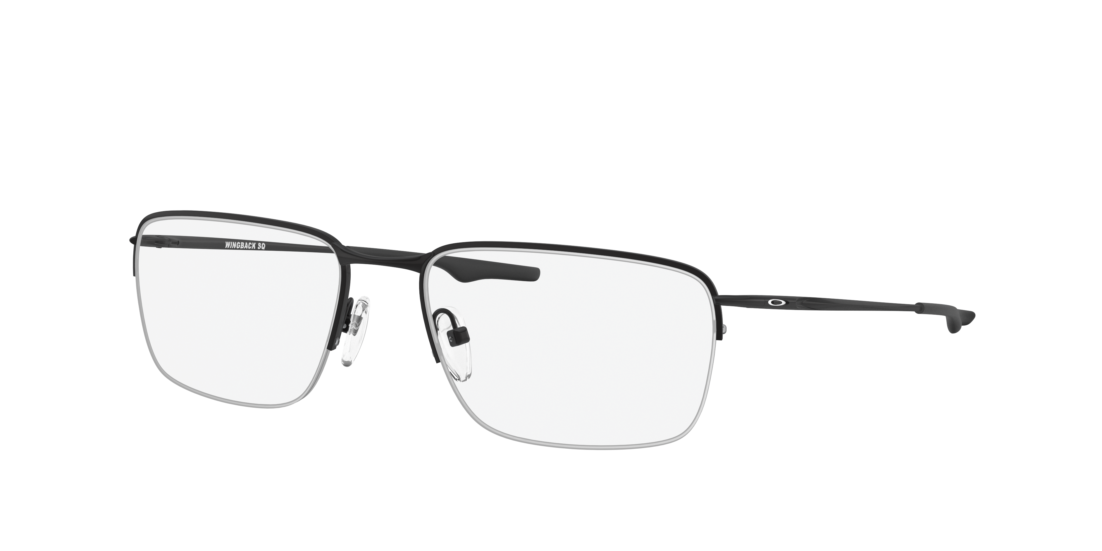 Experience the epitome of optical excellence and style integration with Oakley Wingback SQ eyeglasses. Crafted from titanium, these frames are lightweight yet durable, providing a comfortable fit for all-day wear. The square shape adds a modern touch to your look, while the matte black finish on the frame lends a sleek and sophisticated aesthetic. The satin black color on the arms provides a subtle contrast and also serves as an accent piece. Available with prescription lenses.