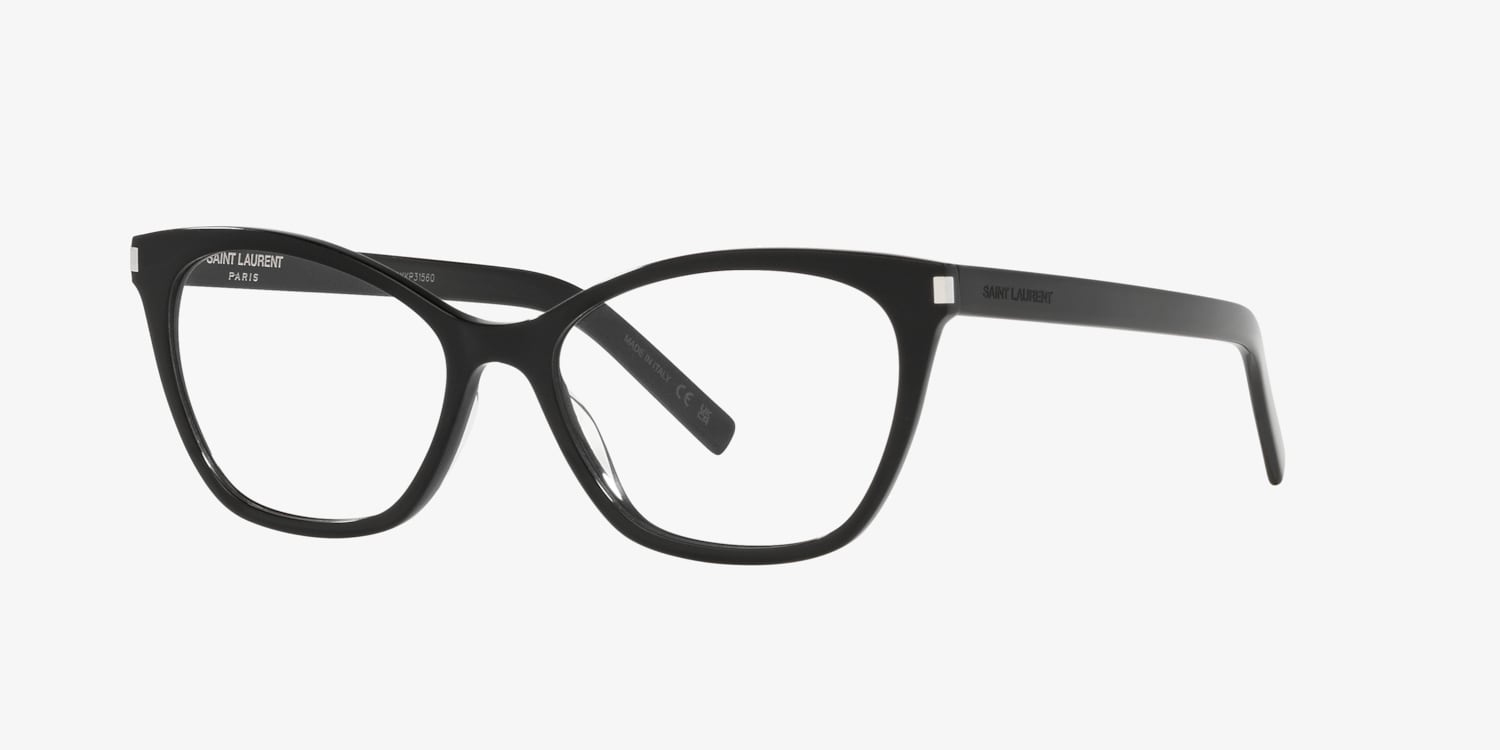 Enhance your style with the Saint Laurent SL 287 Slim optical glasses. The sleek black acetate frame, crafted in a cat eye shape, exudes contemporary elegance. These glasses are not only fashionable but also adaptable, enabling you to customize based on your preferences. Experience the perfect blend of fashion and practicality with the Saint Laurent SL 287 Slim. Available with prescription lenses.