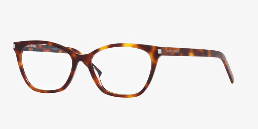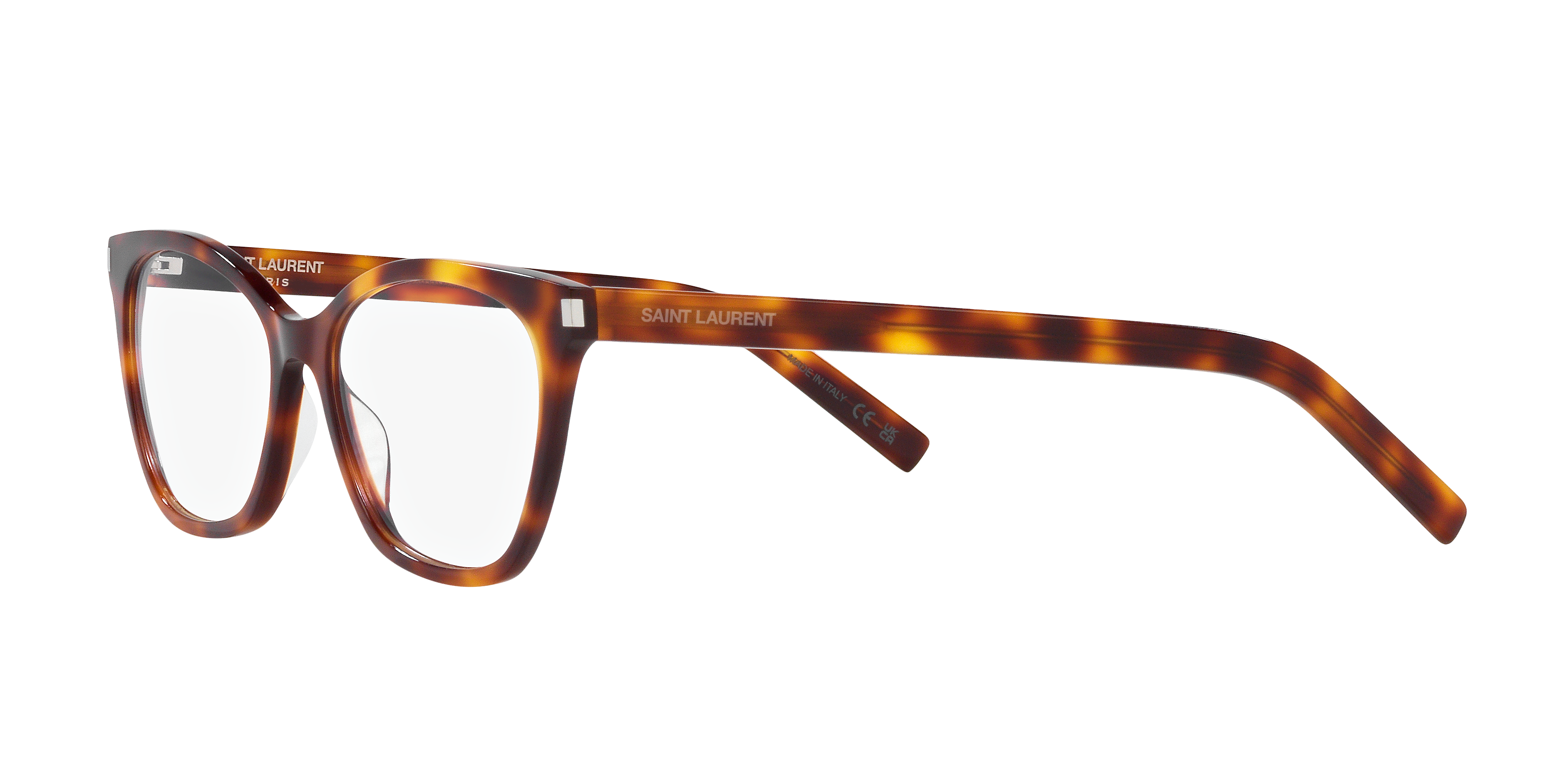 Elevate your fashion while optimizing functionality with Saint Laurent SL 287 Slim optical glasses. The cat eye shape, crafted from polished acetate, adds a touch of retro glamour to any look. These frames come in a vibrant pink color, making them a statement piece for any outfit. With their sleek design and high-quality material, these glasses are not only stylish but also practical. Embrace the trendsetter within you by pairing these shades with any outfit. Available with prescription lenses.