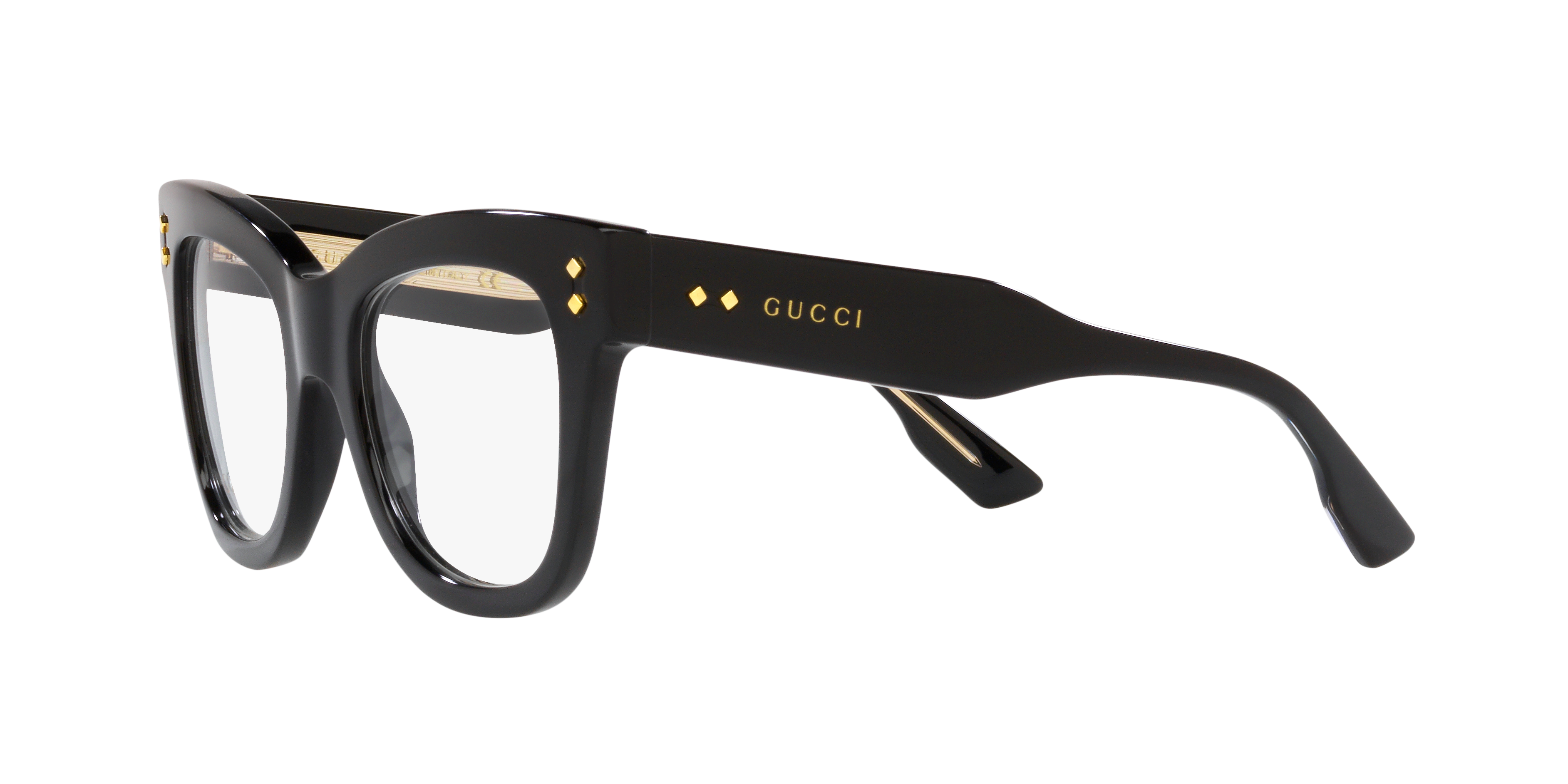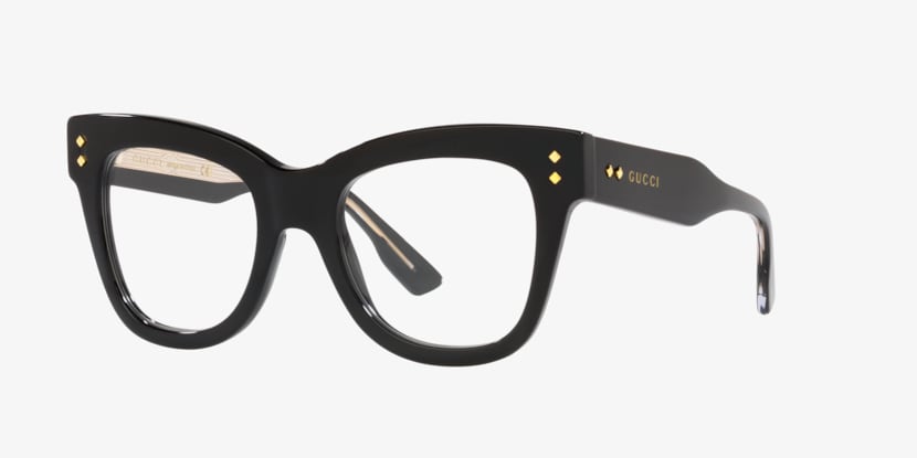Experience the epitome of luxury with Gucci GC001812 eyeglasses. These cat eye frames are crafted from polished acetate, offering both durability and style. The black color adds a touch of mystery, while the transparent lens color offers clarity and versatility. With their unique design and impeccable craftsmanship, these eyeglasses are a perfect addition to any fashion-forward wardrobe, providing both comfort and sophistication. Available with prescription lenses.