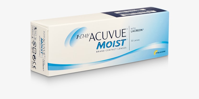 1-Day ACUVUE® MOIST Brand Contact Lenses are an ideal choice if you want an exceptional all-day contact lens wear experience even if you feel your eyes are prone to sensitivity, irritation or allergies. You can enjoy the cleanliness of fresh, new contact lenses every day and the convenience of being able to simply toss them at the end of the day. LACREON® Technology creates a long-lasting cushion of moisture to help keep moisture in and irritation out. Plus, they block approximately 82% of UV-A and 97% of UV-B rays.