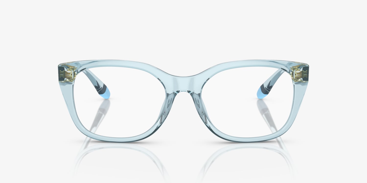 Elevate your style while maintaining optimal functionality with Armani Exchange AX3099U eyeglasses. The polished, shiny transparent azure frame in a unique pillow shape adds a touch of sophistication to any look. These glasses are not only stylish but also versatile, making them an ideal choice for everyday wear. Choose these frames and experience the perfect blend of fashion and comfort. Available with prescription lenses.