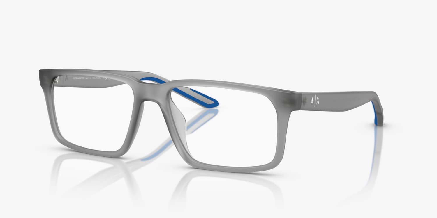 Elevate your fashion with the Armani Exchange AX3118U eyeglasses. The matte opalescentgrey frame adds sophistication to any outfit. The rectangle shape and demolens give these glasses a modern and chic look. These frames are stylish and functional, allowing you to personalize them to suit your own taste. Embrace your individual style with these versatile Armani Exchange AX3118U eyeglasses. Available with prescription lenses.