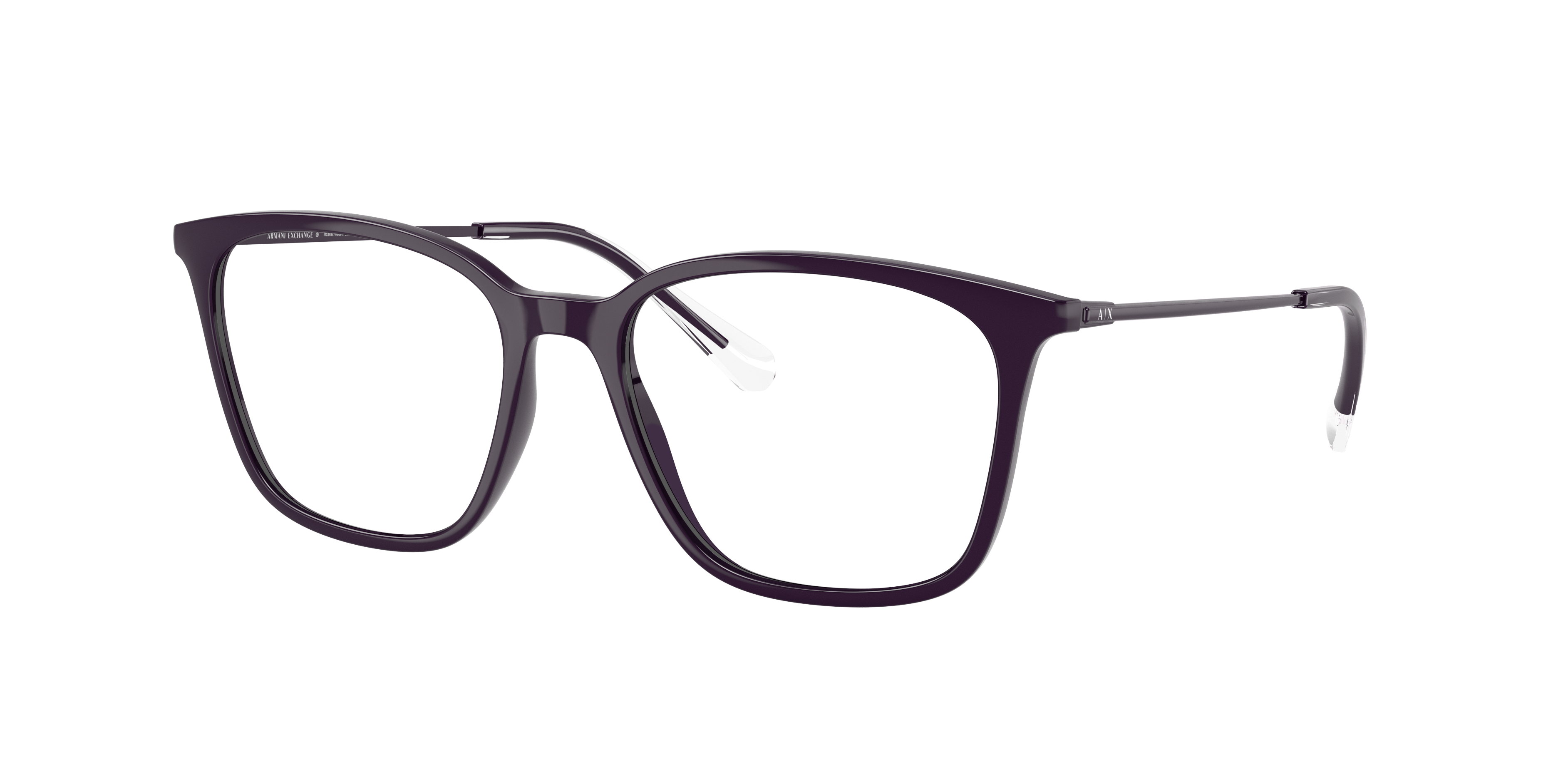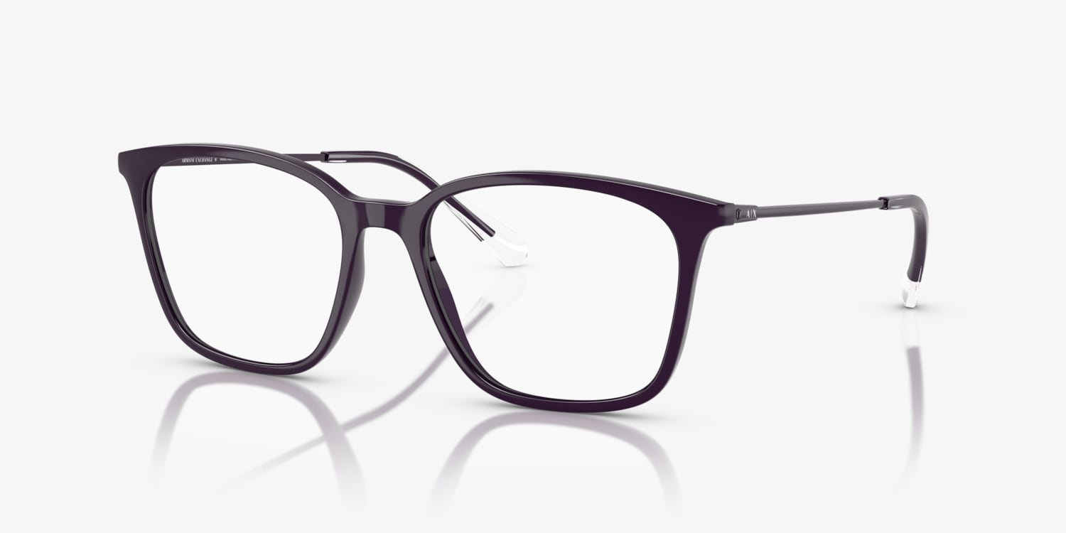 Discover the impeccable synergy of style and optical functionality in Armani Exchange AX3120. These butterfly-shaped glasses features a polished, shiny dark purple frame that adds a touch of glamour to any look. The black frames are paired with stylishly contrasted lenses for a modern and sophisticated aesthetic. Embrace your individuality with these unique shades from Armani Exchange. Available with prescription lenses.