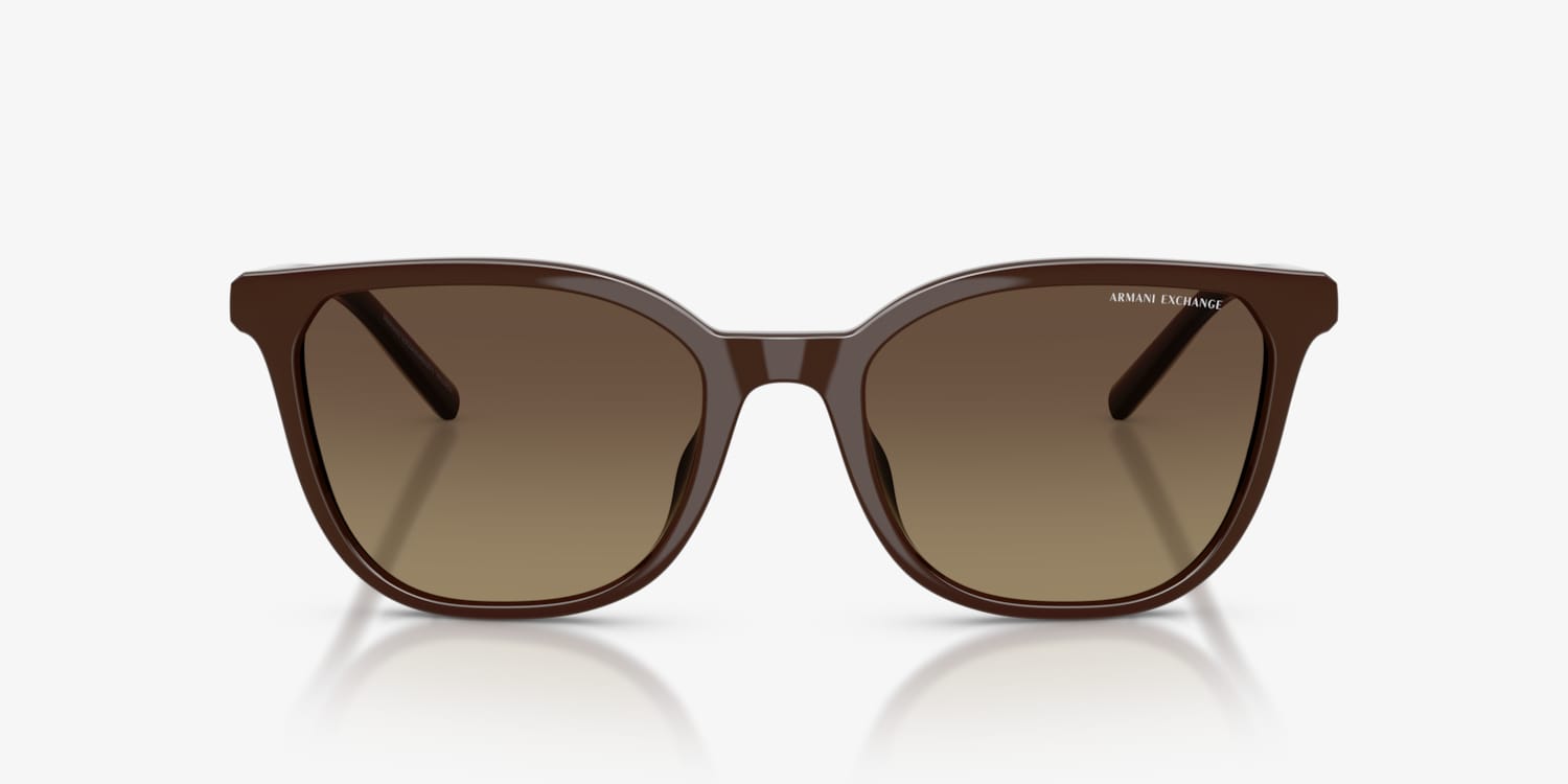 Elevate your style with the Armani Exchange AX4168SU gradient sunglasses. These vintage-inspired cat-eye frames bring modern sophistication with their soft curves and brown and tan tones. Crafted from durable plastic with injected temples, they promise lightweight comfort. The yellow gradient lenses not only add flair but also feature advanced polarized technology to reduce glare and enhance clarity. Finished with updated metal plaque logo detailing, this bold design is perfect for making a statement.
