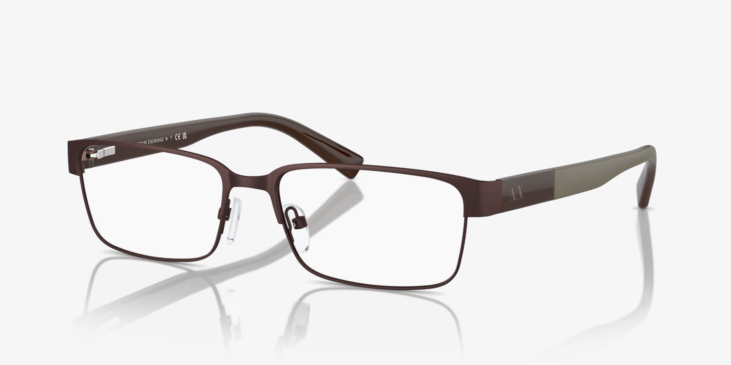 Elevate your fashion and optical game with Armani Exchange AX1017 eyeglasses. The rectangle shape adds a touch of sophistication to the frame, while the metal material ensures durability. The matte finish and brown color give these glasses a sleek, modern look. Pair these frames with your favorite lenses for a stylish and practical accessory. Available with prescription lenses.