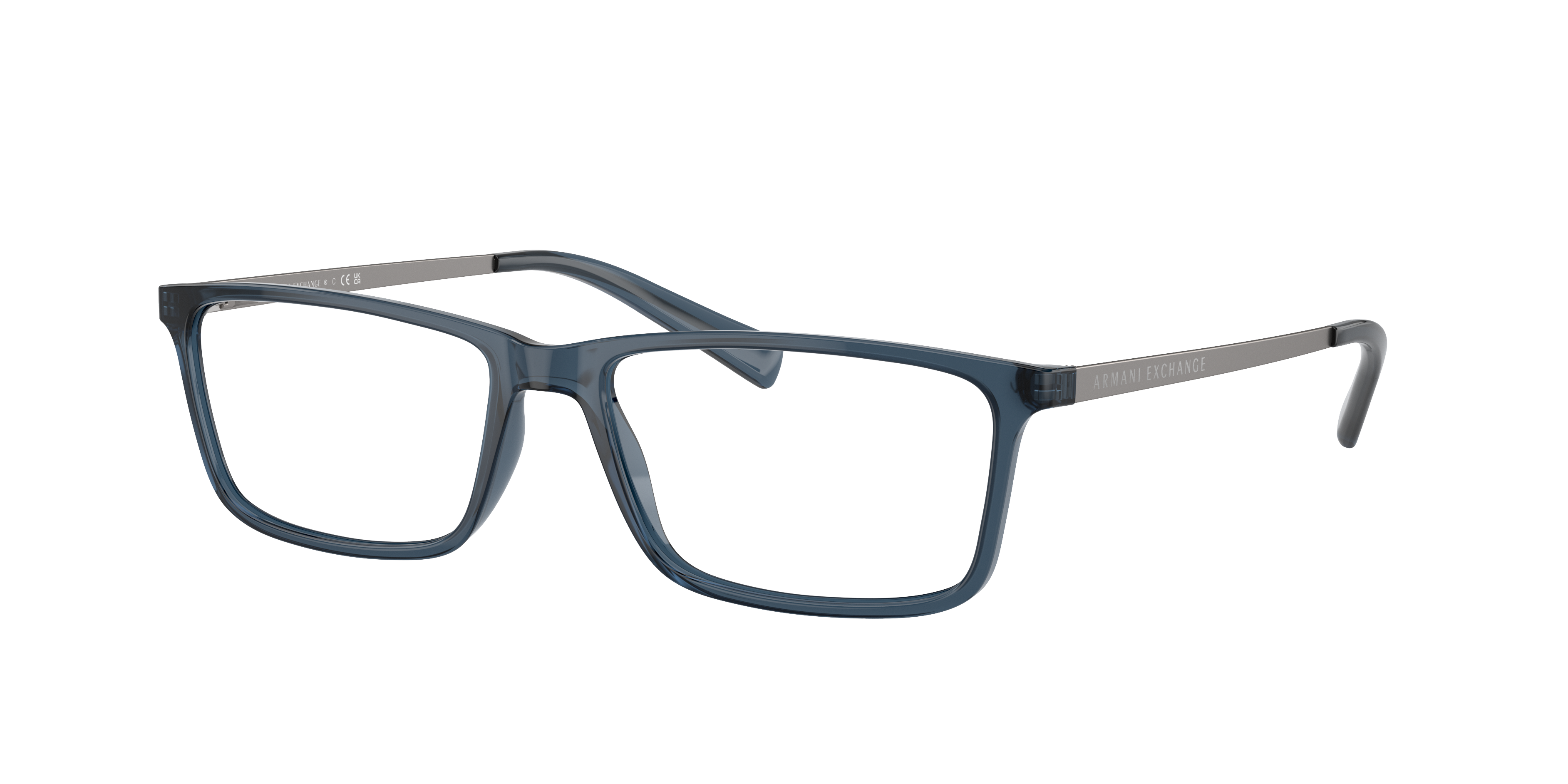 Experience the perfect fusion of style and efficiency with Armani Exchange AX3027 eyeglasses. The polished, transparent blue frame in a rectangle shape adds a touch of sophistication to your look. These shades are not only stylish but also practical, making them an ideal choice for everyday wear. Choose these eyeglasses to complement your unique style while enhancing your vision. Available with prescription lenses.